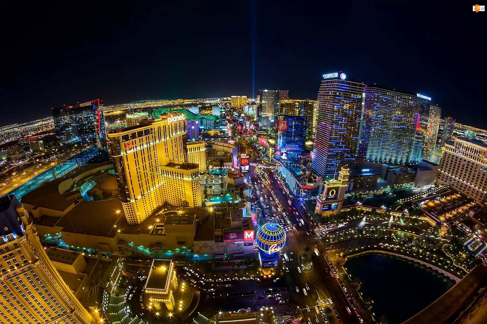 Noc, Ameryka Północna, Miasto, Las Vegas, Oświetlone