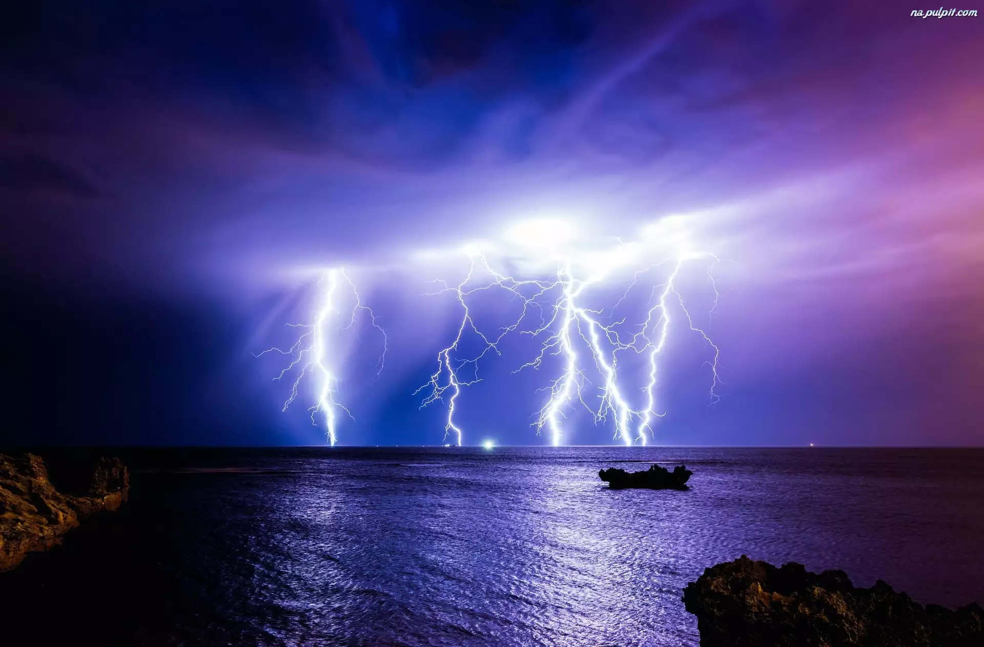 Noc, Burza, Błyskawica, Pioruny, Morze