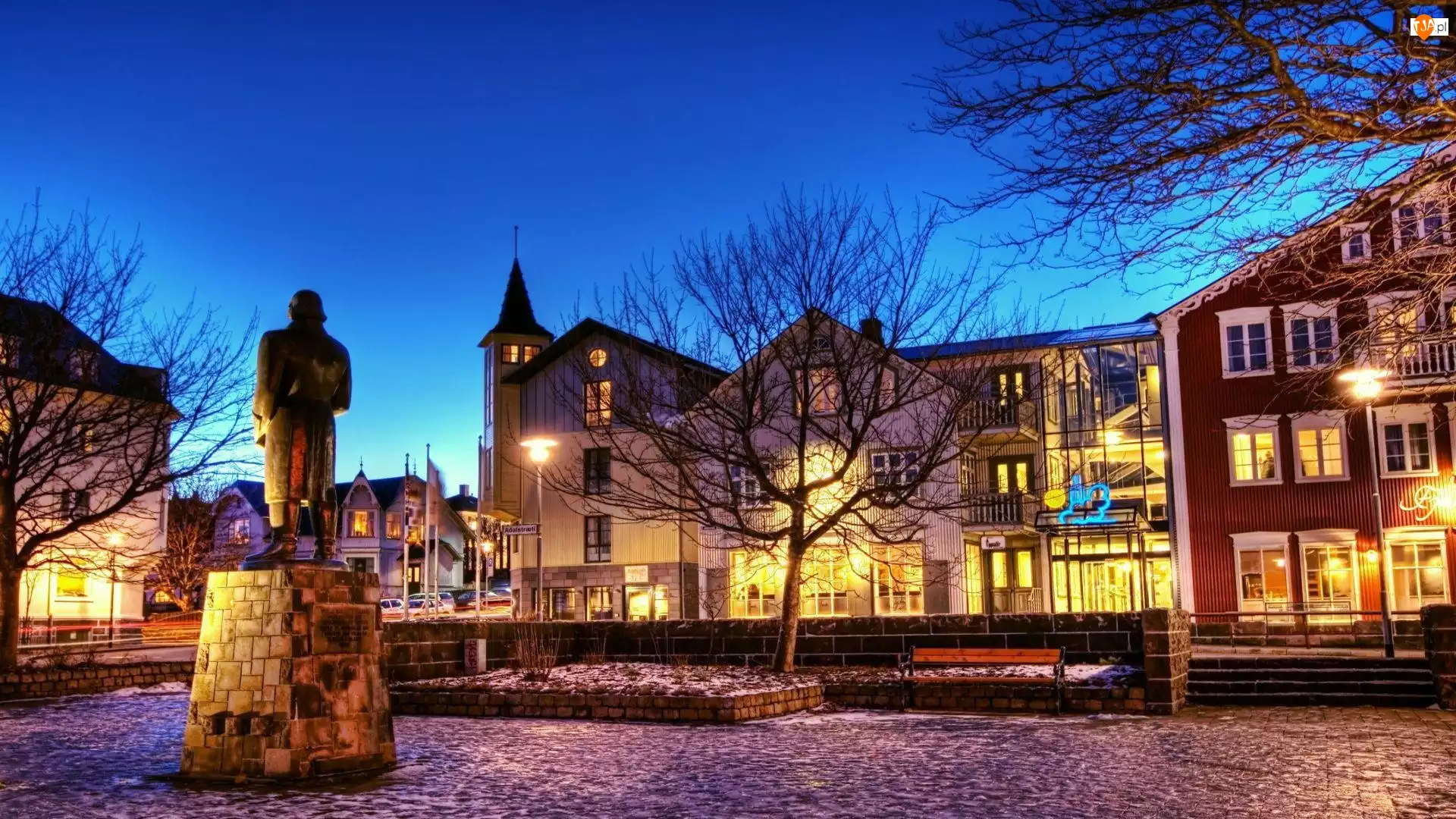 Noc, Islandia, Domy, Reykjavik, Pomnik
