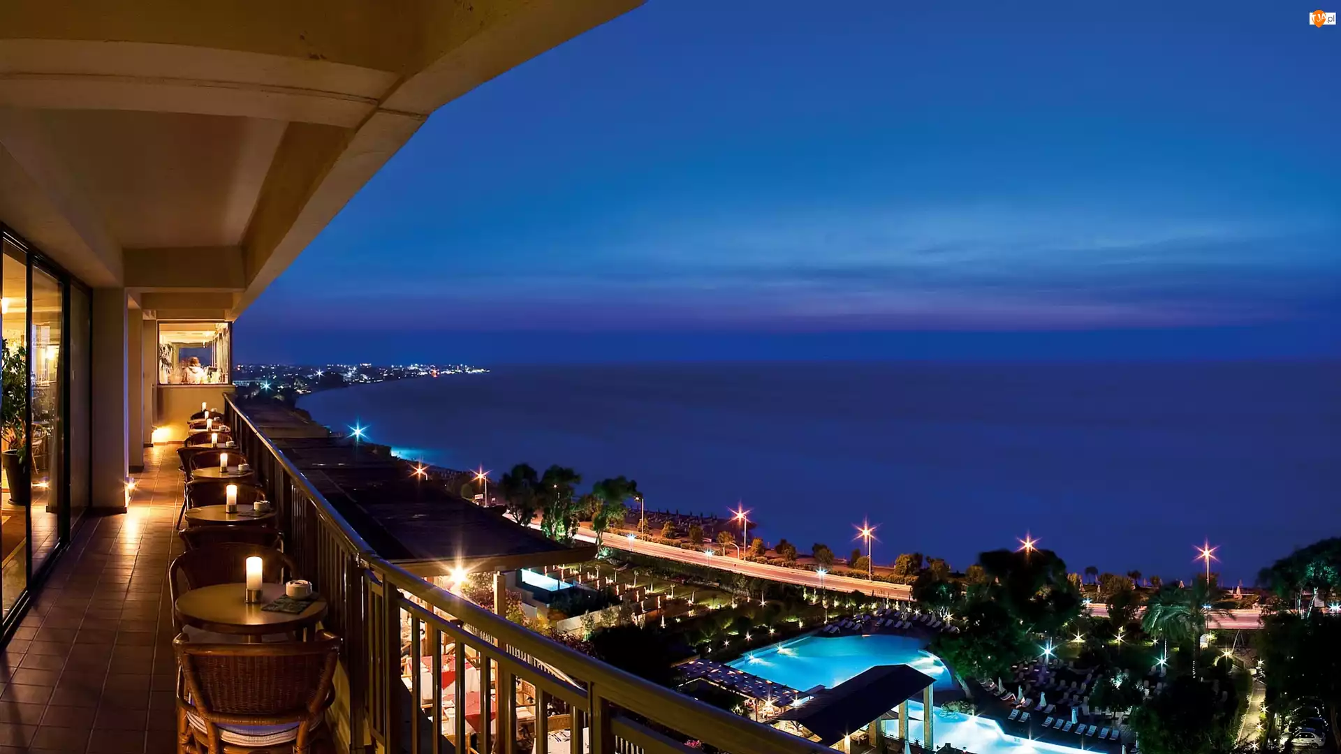 Noc, Wybrzeże, Baseny, Hotel, Latarnie