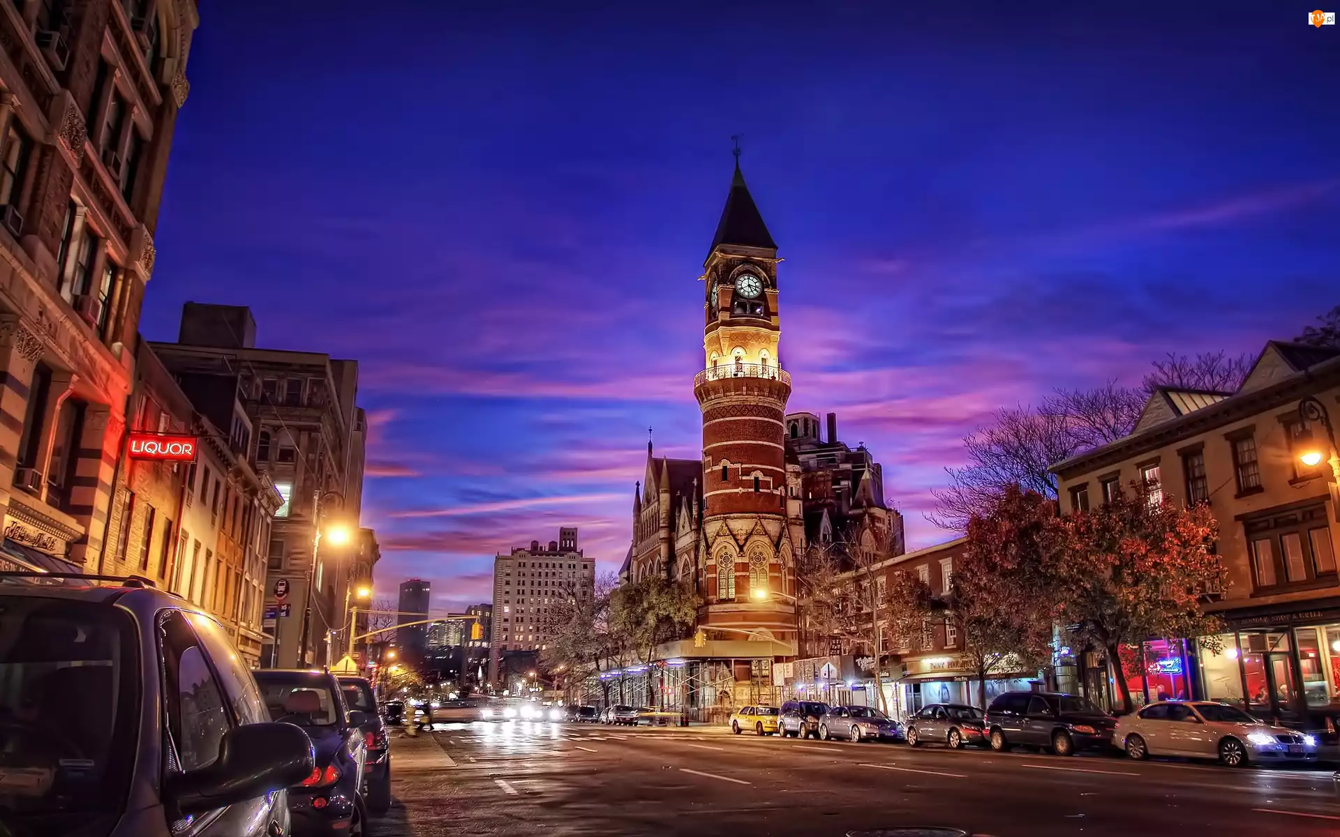 Nocą, Budynki, Market, Jefferson, Manhattan