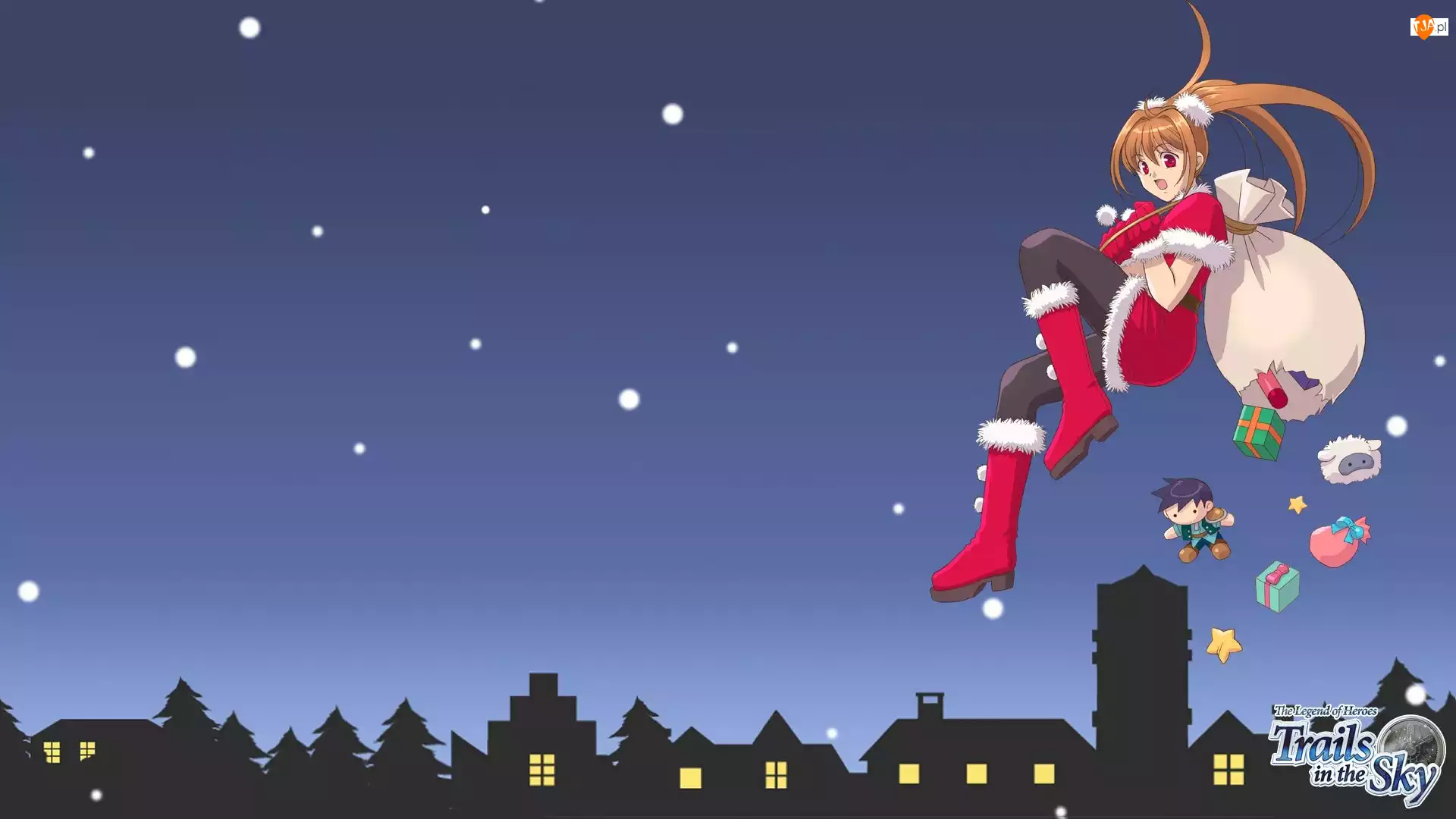 Nocą, Miasto, Trial, Sky, The, Dziewczyna, Przebranie, Prezentów, Świąteczne, In, Worek, Niebo