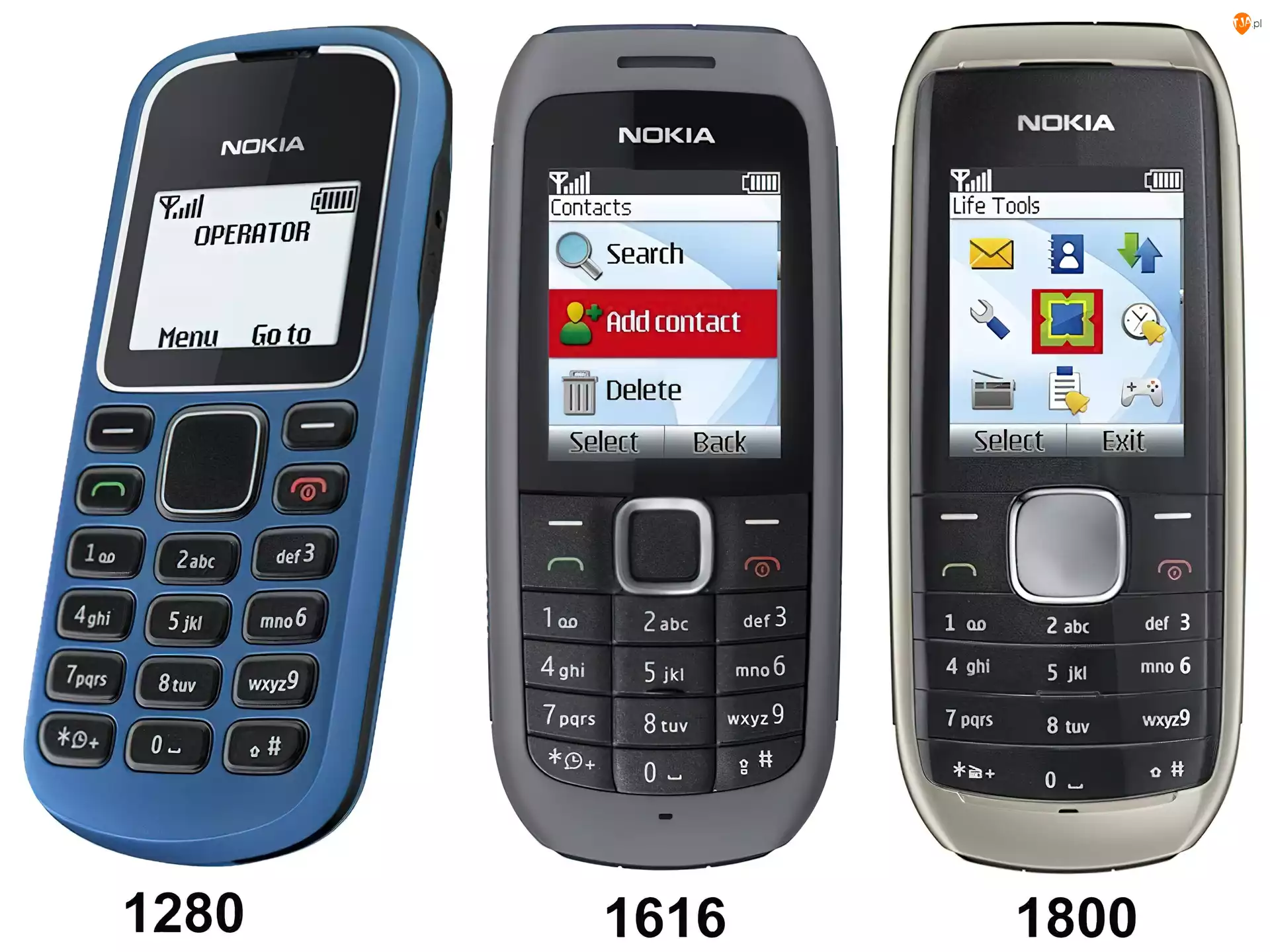 Nokia 1280, Szara, Nokia 1616, Srebrna, Nokia 1800, Niebieska