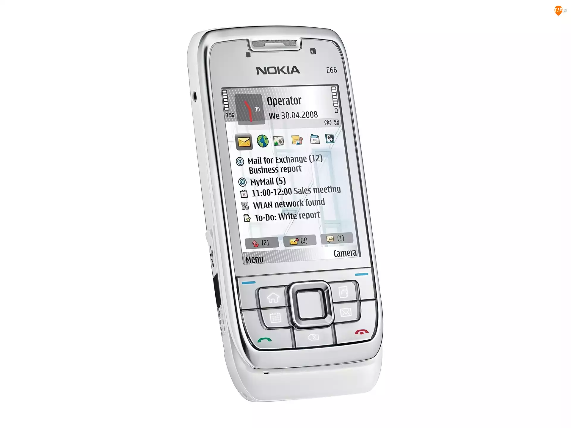 Nokia E66, Ekran, Srebrny, 3.5G