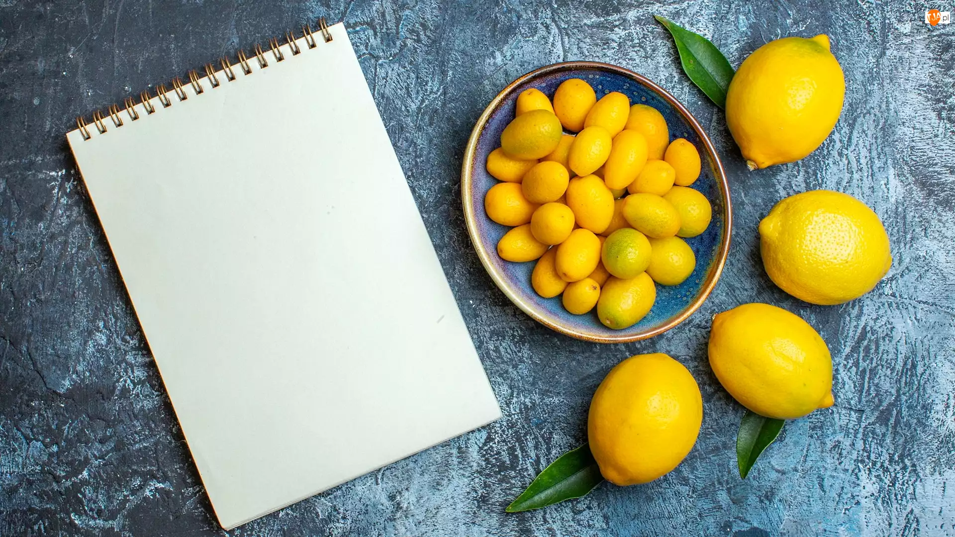 Talerz, Notatnik, Cytryny, Kumkwaty