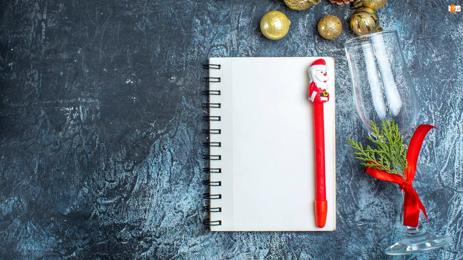 Bombki, Kompozycja, Długopis, Notatnik, Kieliszek