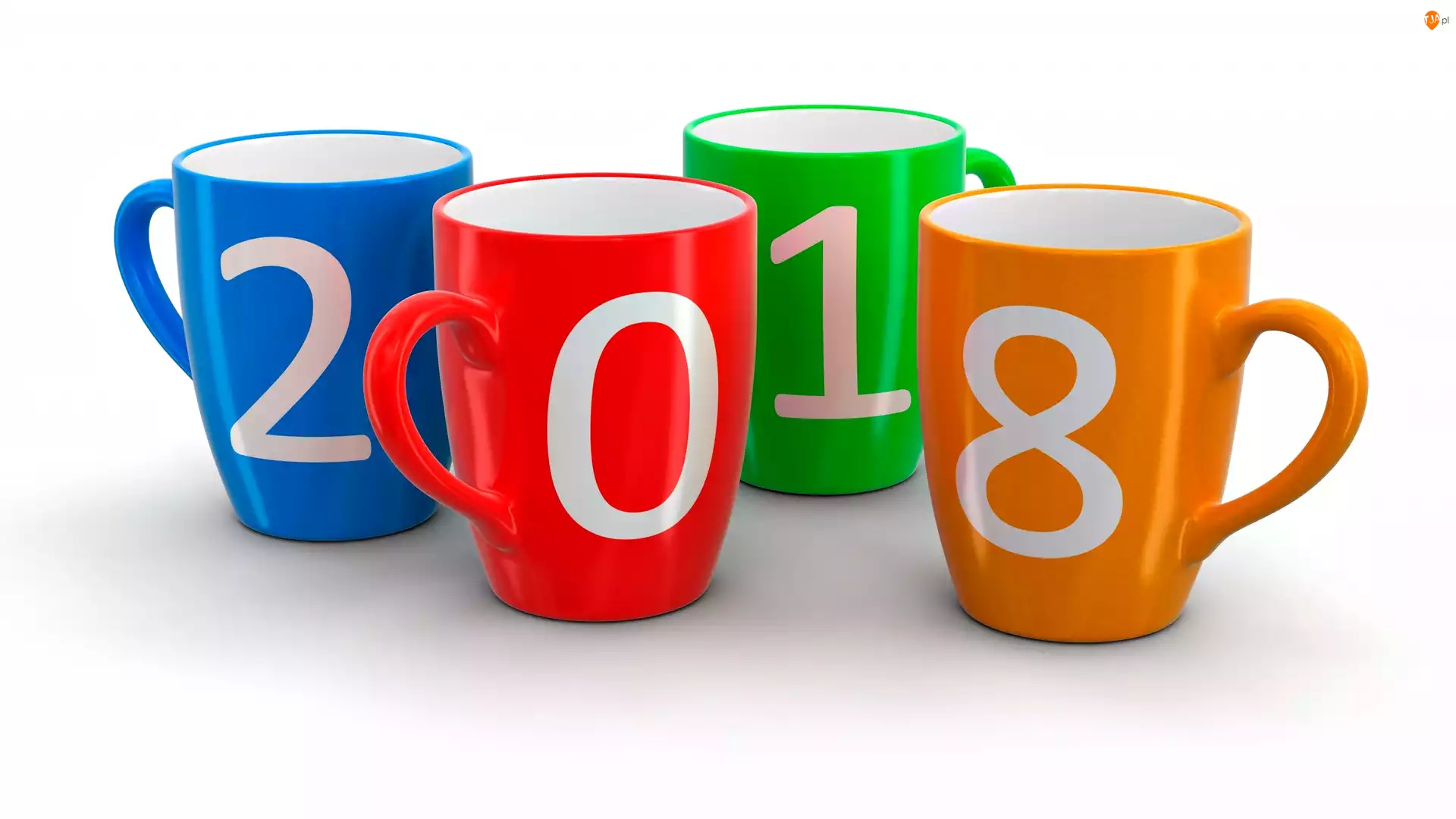 Nowy rok, Białe tło, Kolorowe, Kubki, 2018