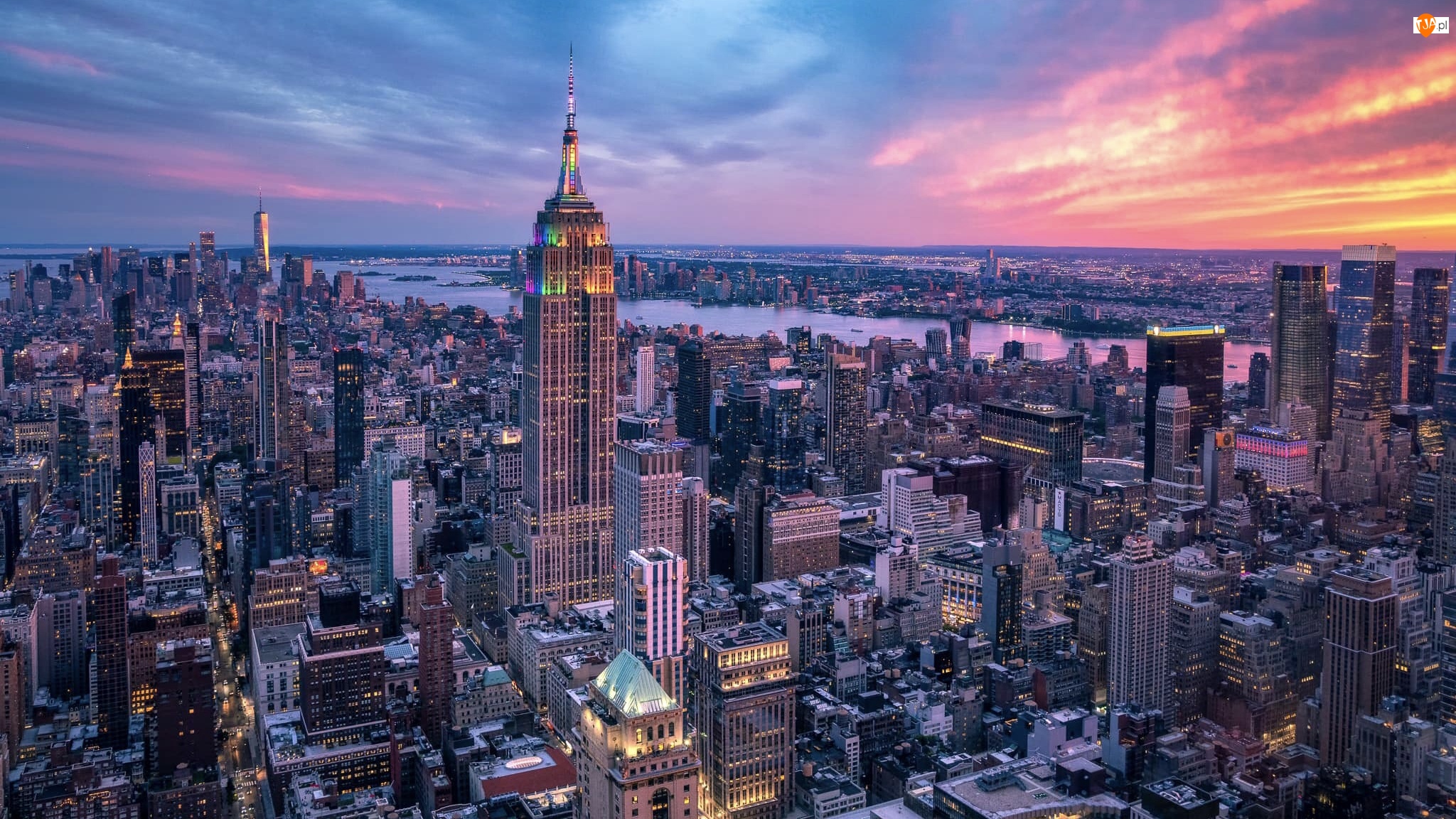 Nowy Jork, Wieżowce, Manhattan, Stany Zjednoczone, Hudson River, Rzeka, Empire State Building