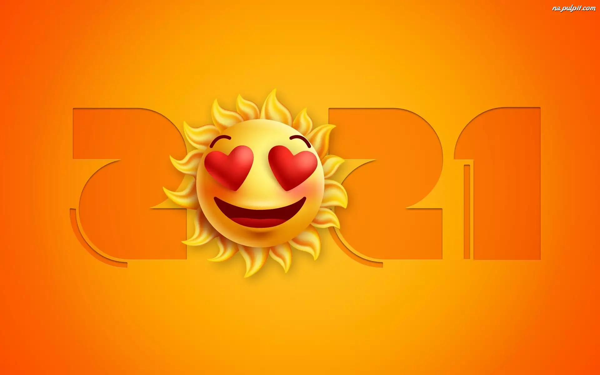 Nowy Rok, 2021, Grafika, Napis, Uśmiech, Serduszka, Słoneczko
