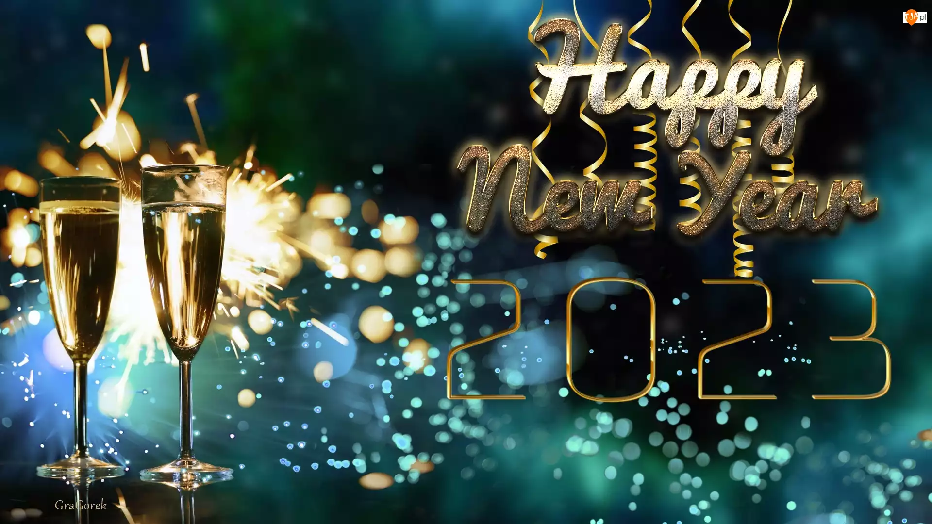 Nowy Rok, Grafika, Życzenia, Szampan, 2023