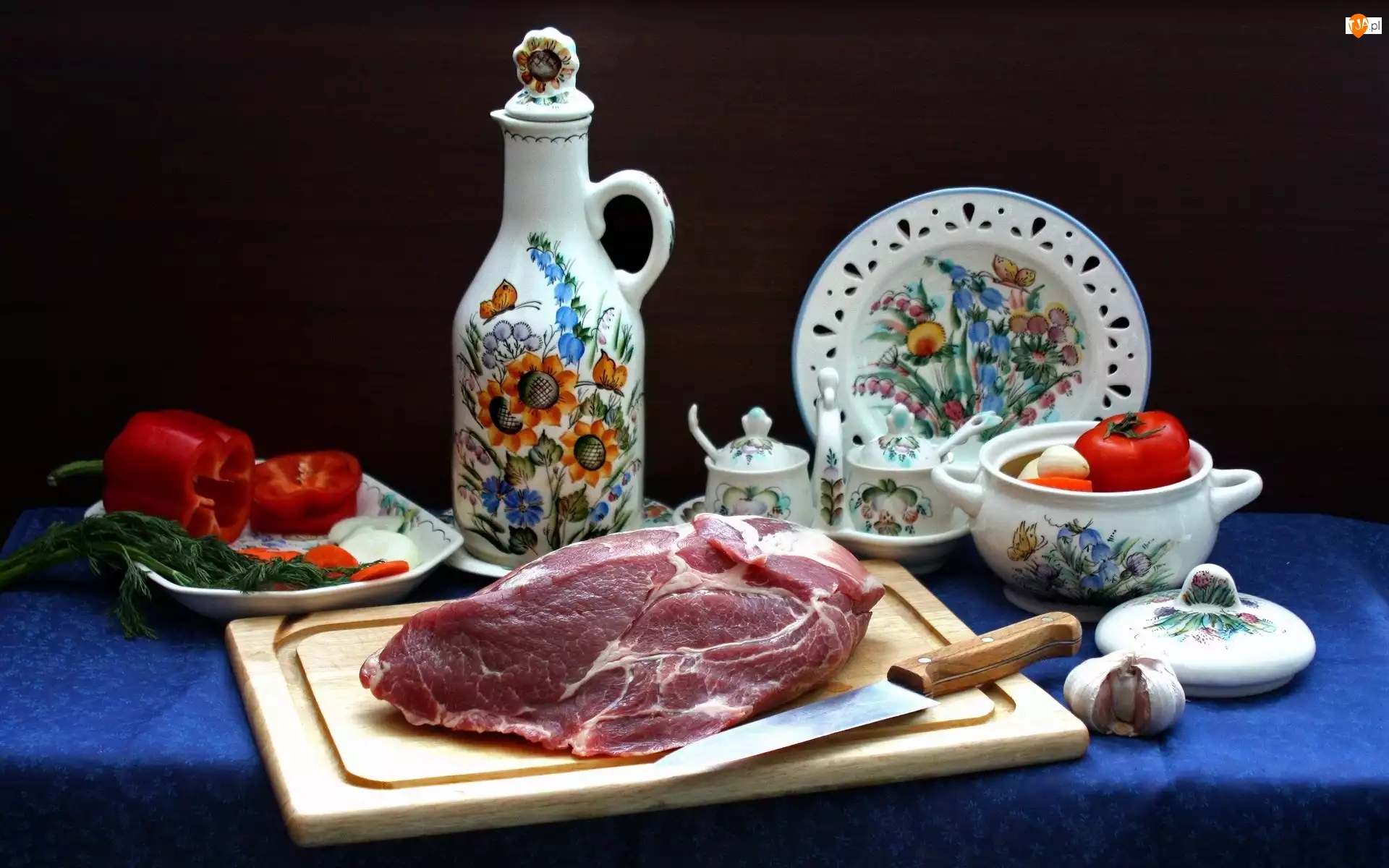 Nóż, Mięso, Naczynia, Warzywa, Deseczka