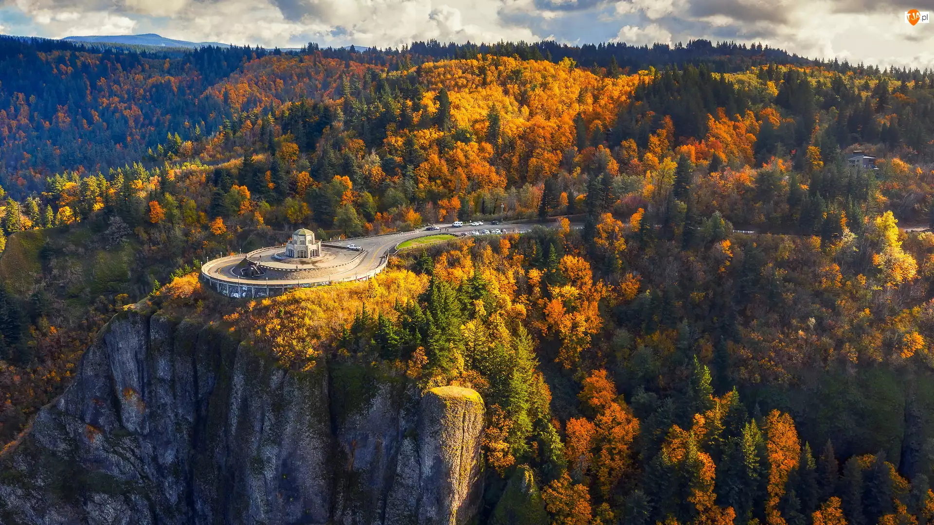 Muzeum Vista House, Lasy, Stany Zjednoczone, Jesień, Stan Oregon, Crown Point, Skały
