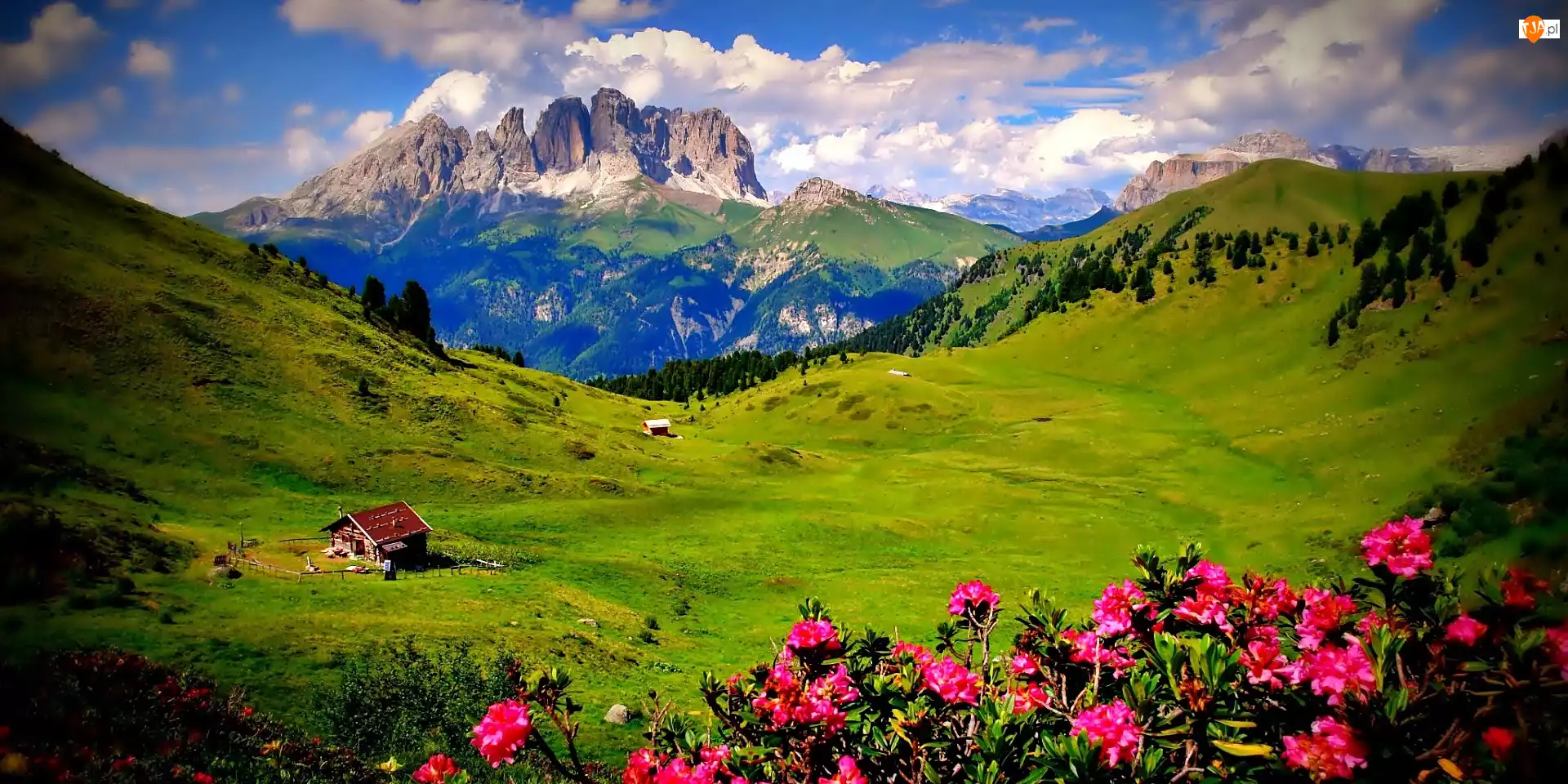 Obłoki, Kwitnące, Góry, Rododendrony, Łąki, Zagroda