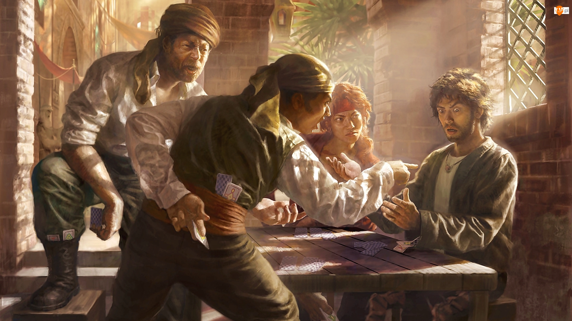 Gracze, Mężczyźni, Oszust, Digital painting, Karty, Ilustracja