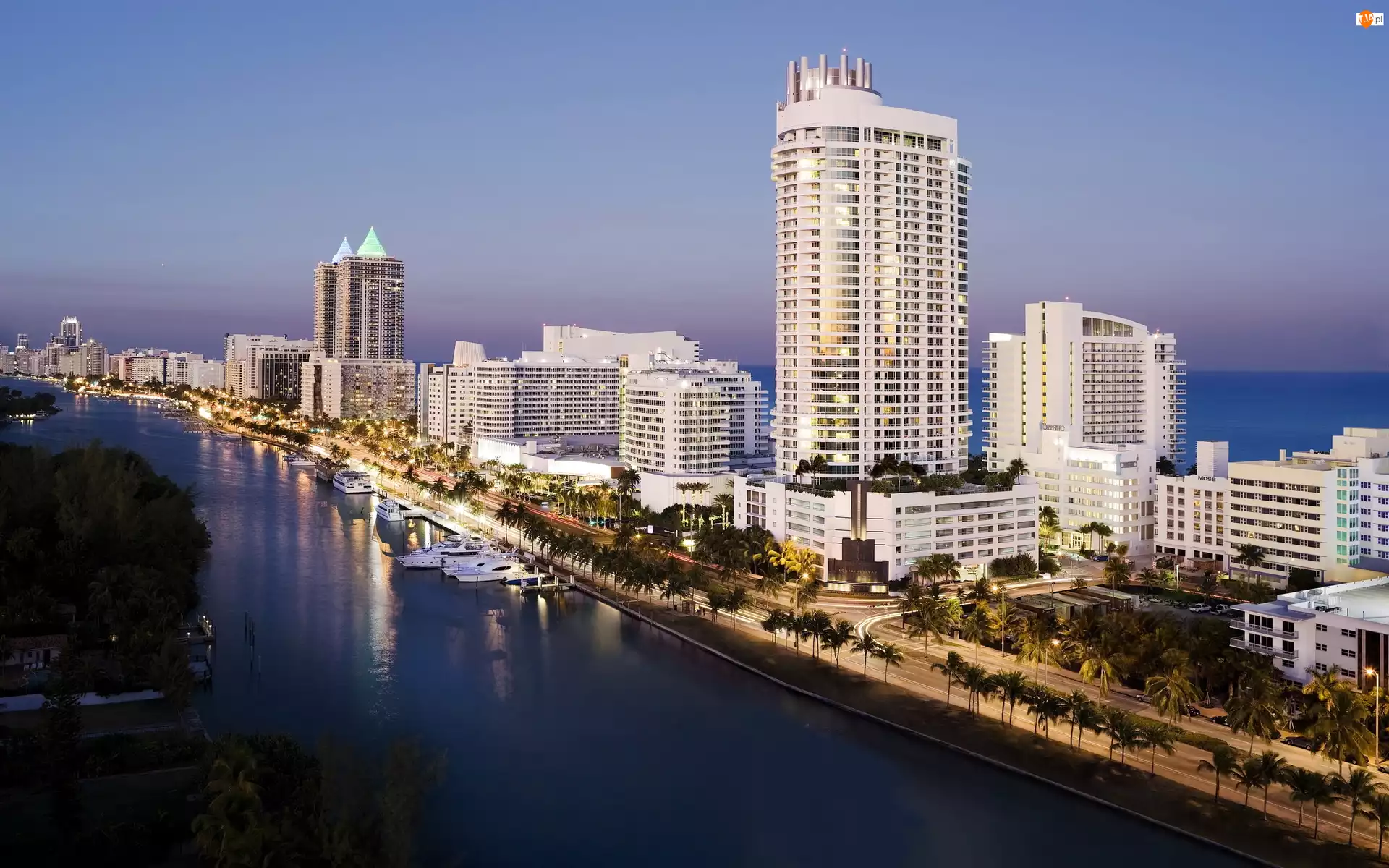 Ocean, Palmy, Miami, Miasto, USA, Panorama, Jachty