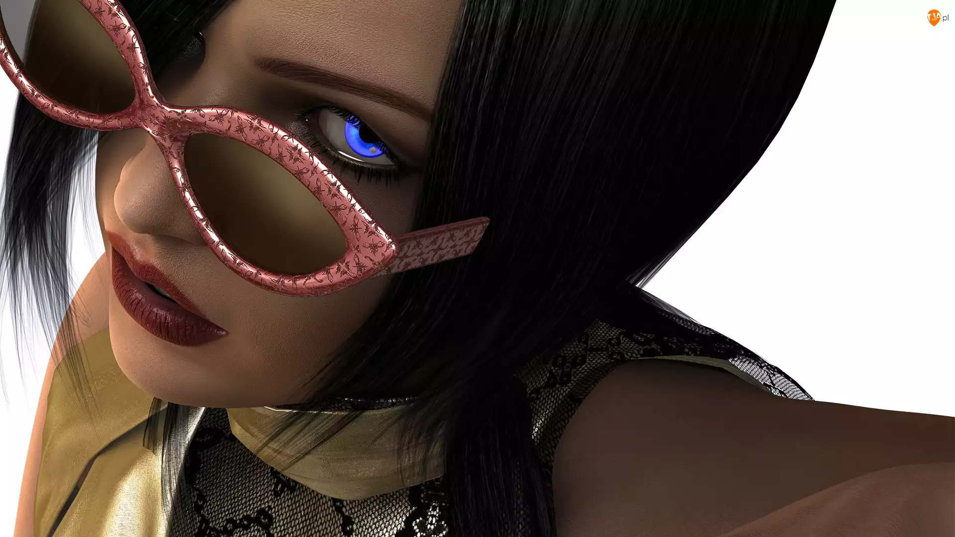 Oczy, 2D, Niebieskie, Dziewczyna, Okulary
