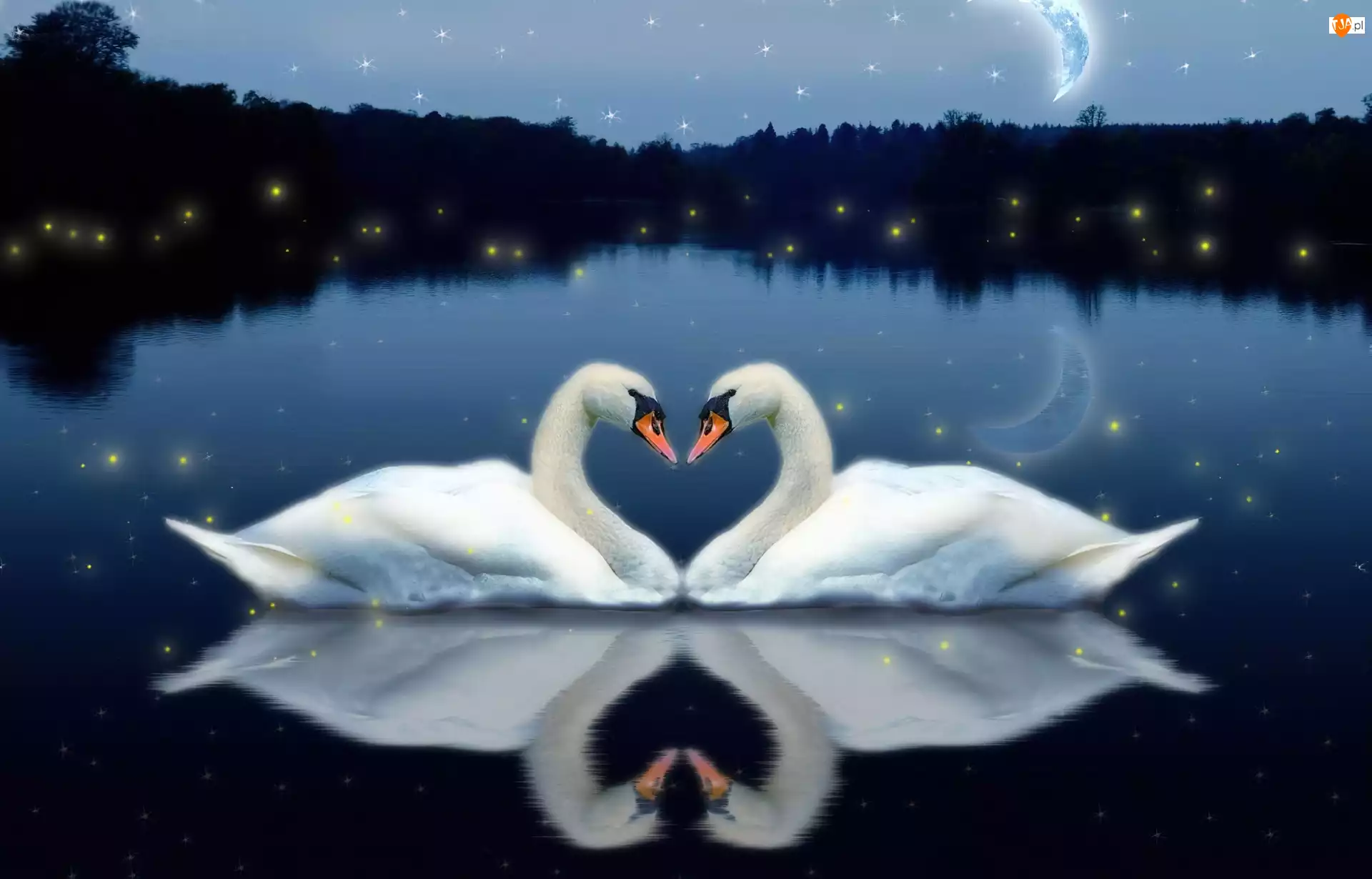 Odbicie, Dwa, Łabędzie, Zakochane, Jezioro