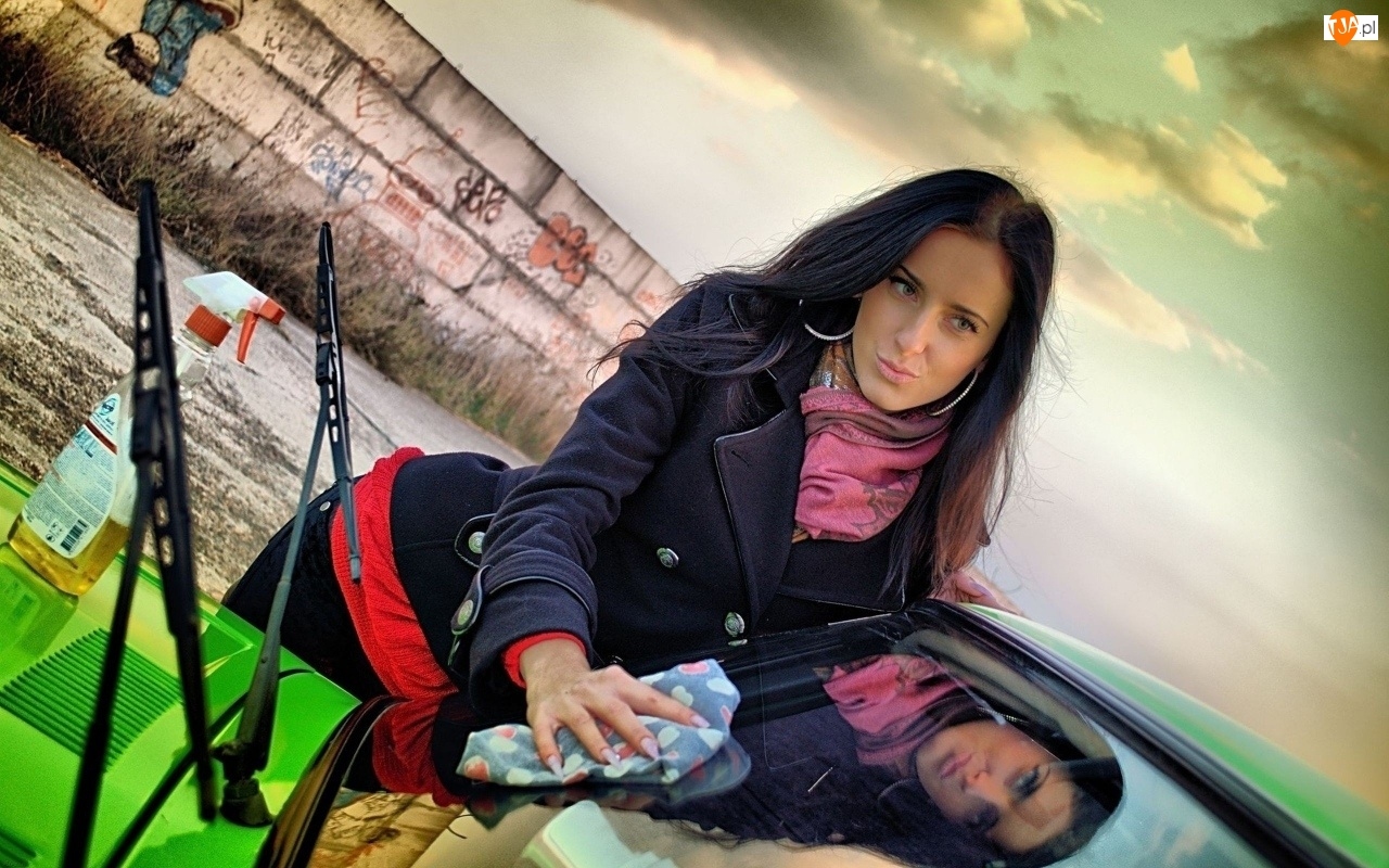 Wycieraczki, Odbicie, Samochód, Kobieta, Ściereczka