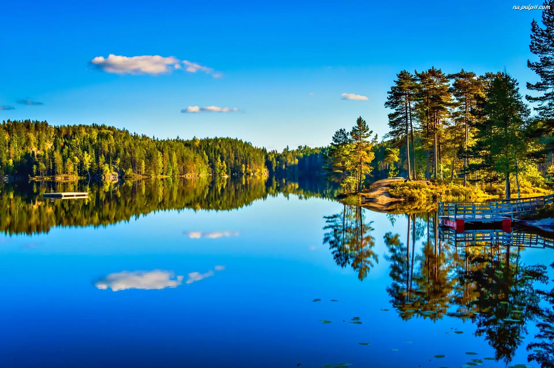 Odbicie, Lato, Lasy, Jezioro, Pomost