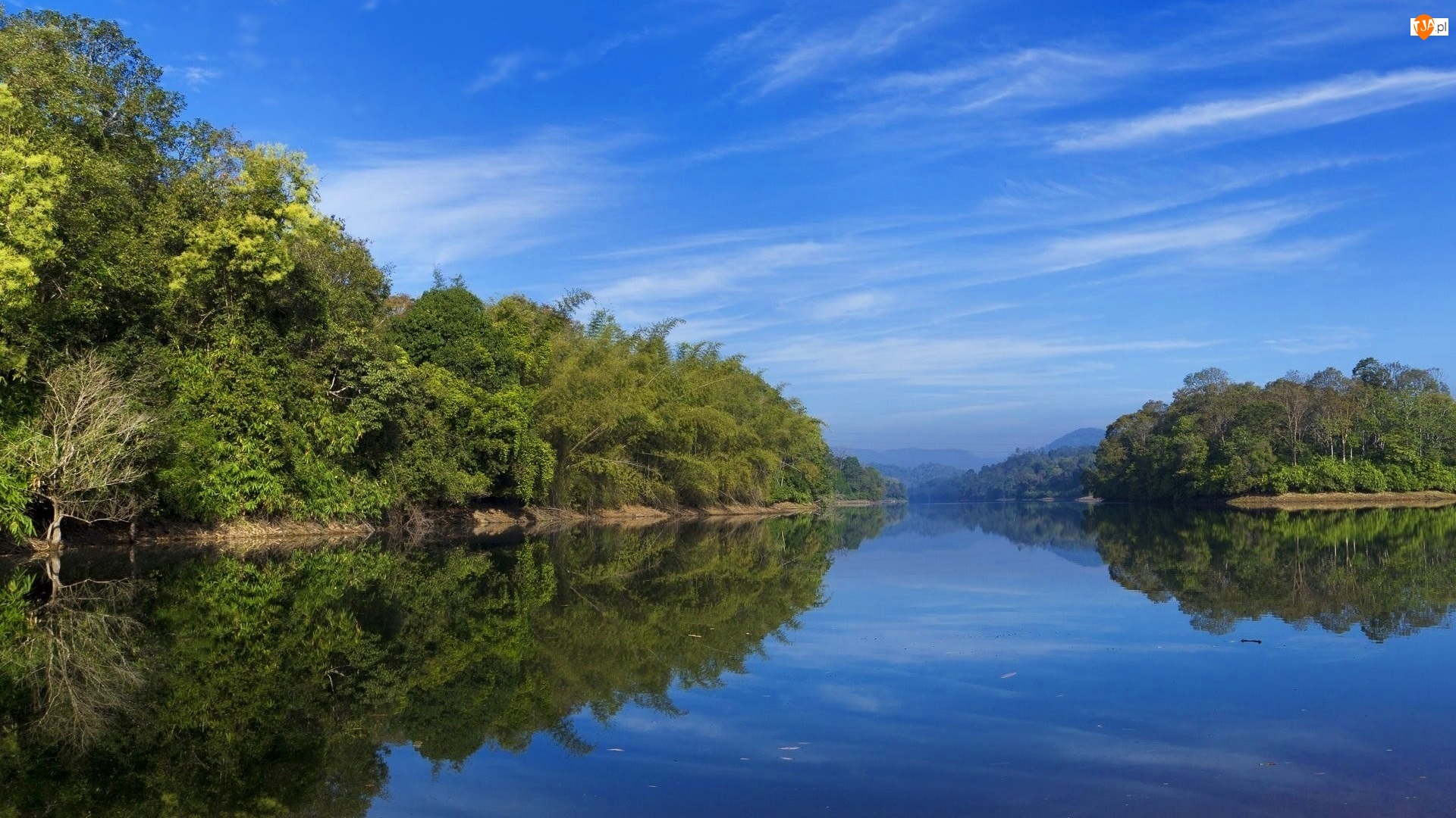 Odbicie, Niebo, Drzewa, Rzeka, Błękitne