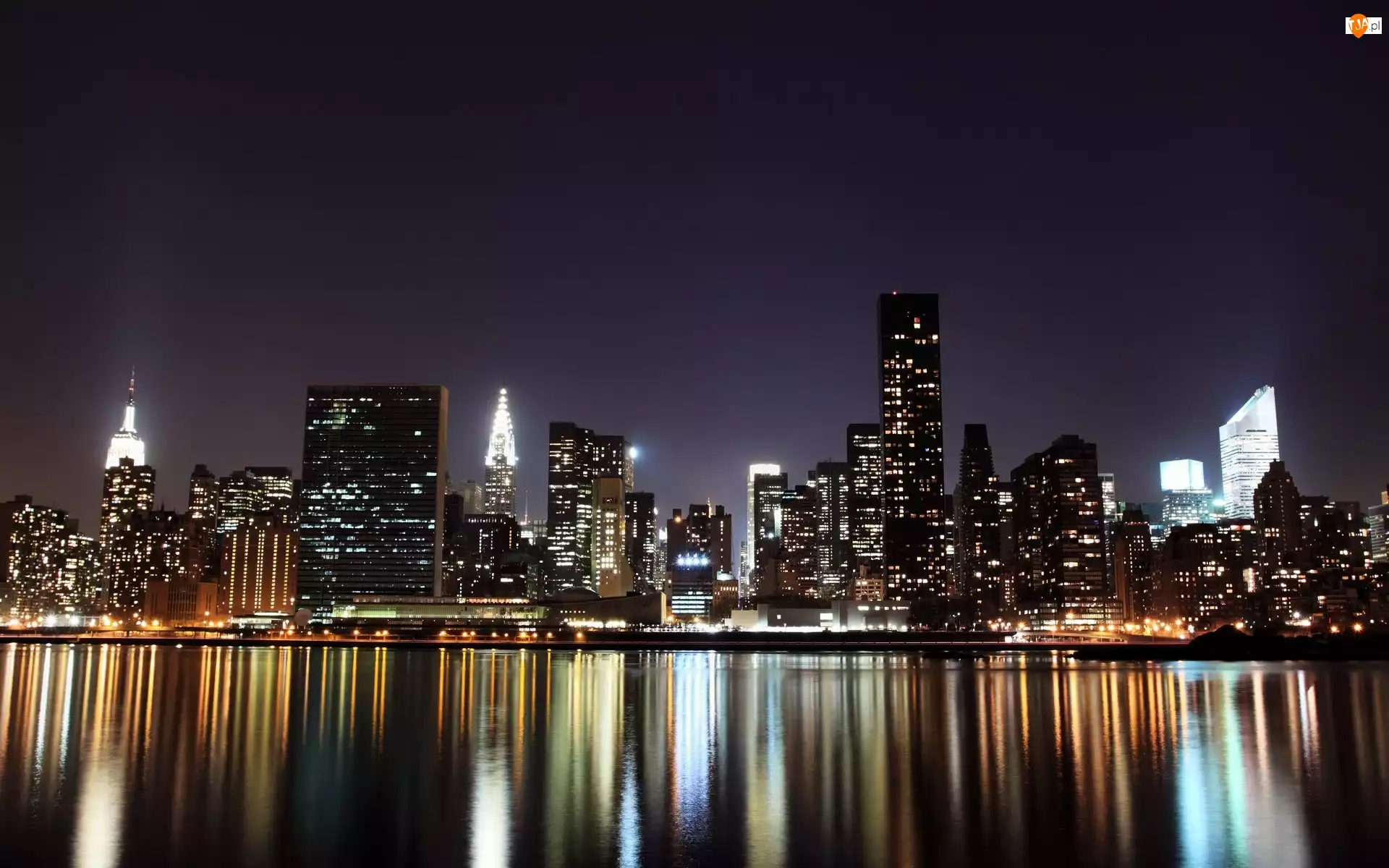 Odbicie, Rzeka, Miasta, Panorama, Nocą