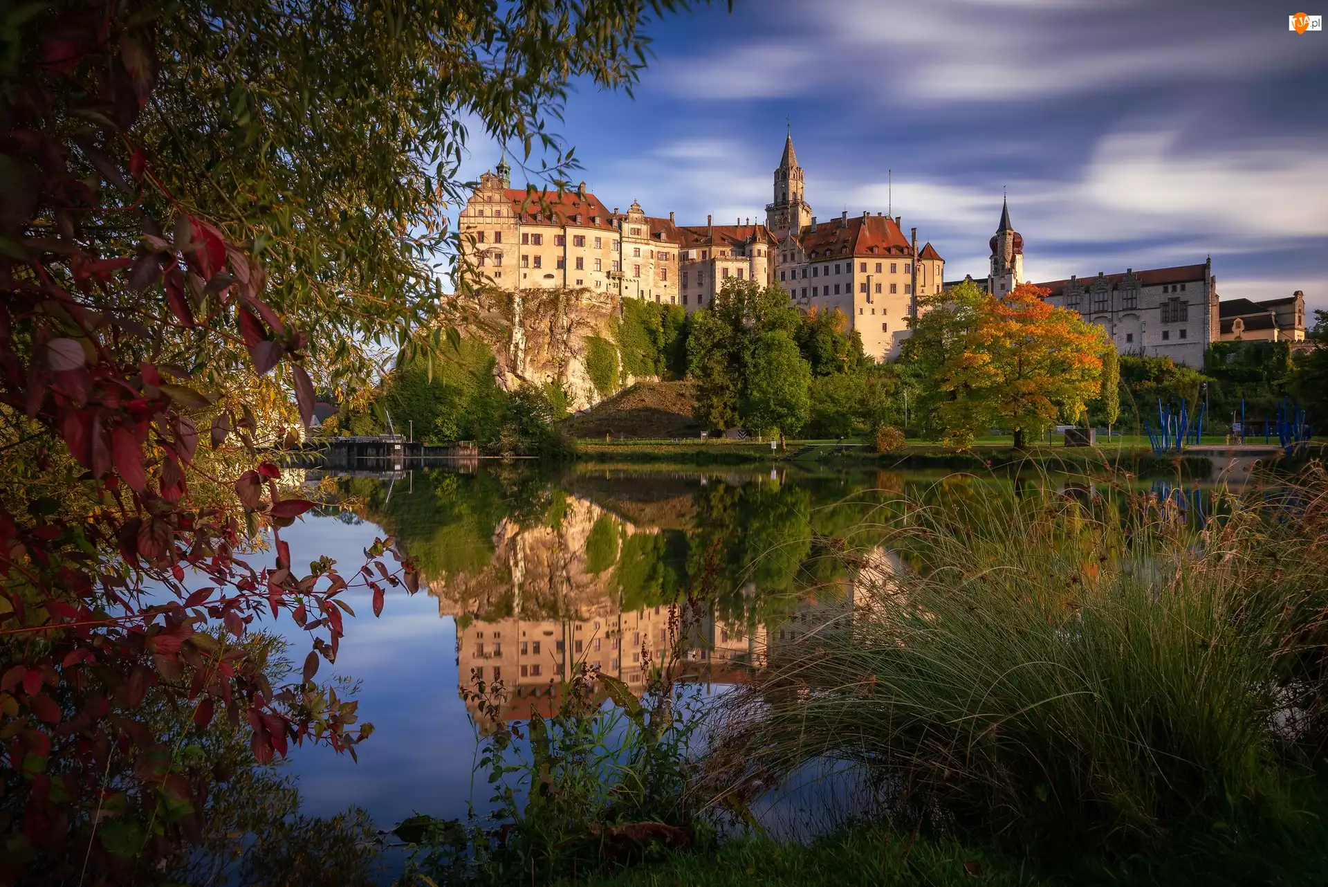 Rzeka, Dunaj, Niemcy, Zamek Sigmaringen, Badenia-Wirtembergia, Zieleń, Drzewa