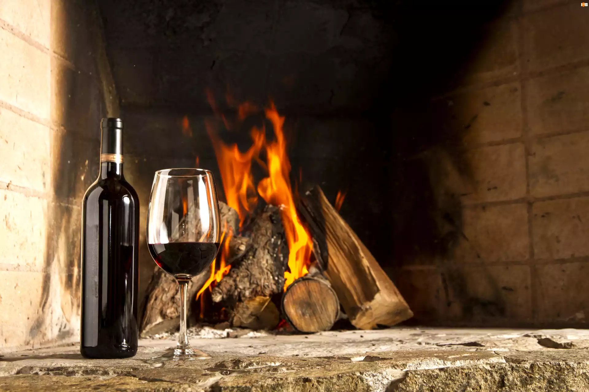 Ogień, Wino, Kieliszek, Kominek