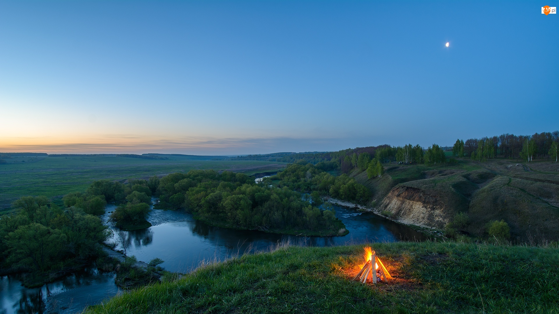 Ognisko, Wzgórza, Rzeka, Lasy, Łąki