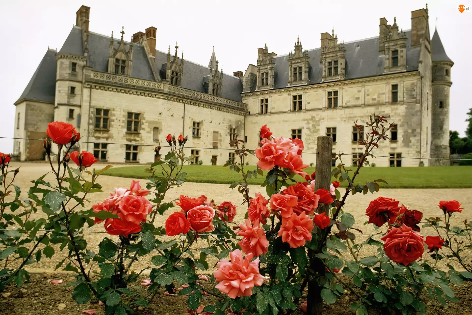 Ogród, Amboise. Francja, Róże, Zamek