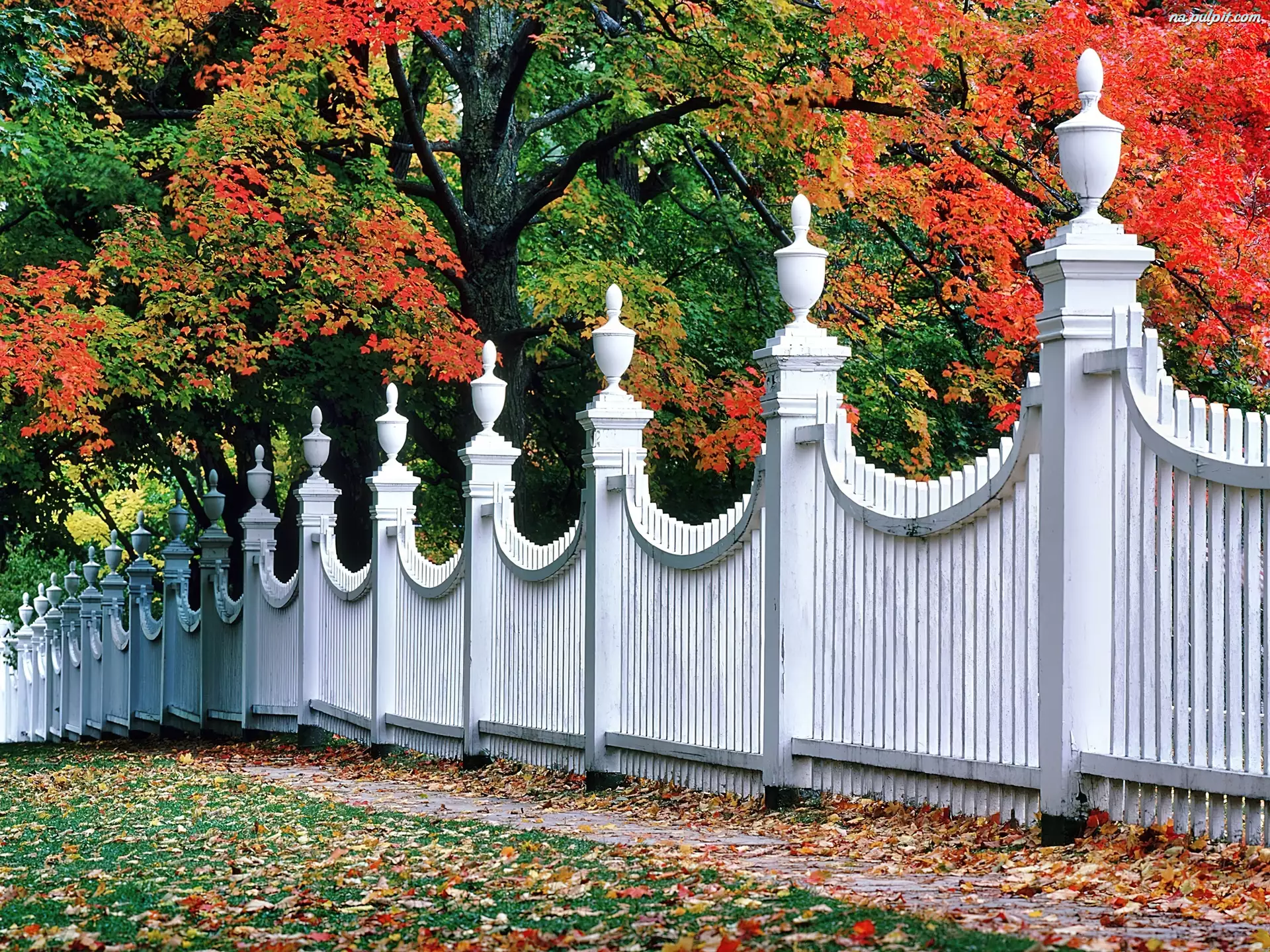 Ogrodzenie, Jesień, Park, Drzewa, Białe