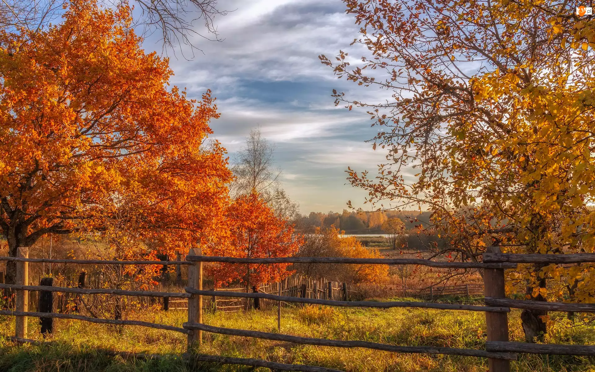 Ogrodzenie, Jesień, Pożółkłe, Drzewa