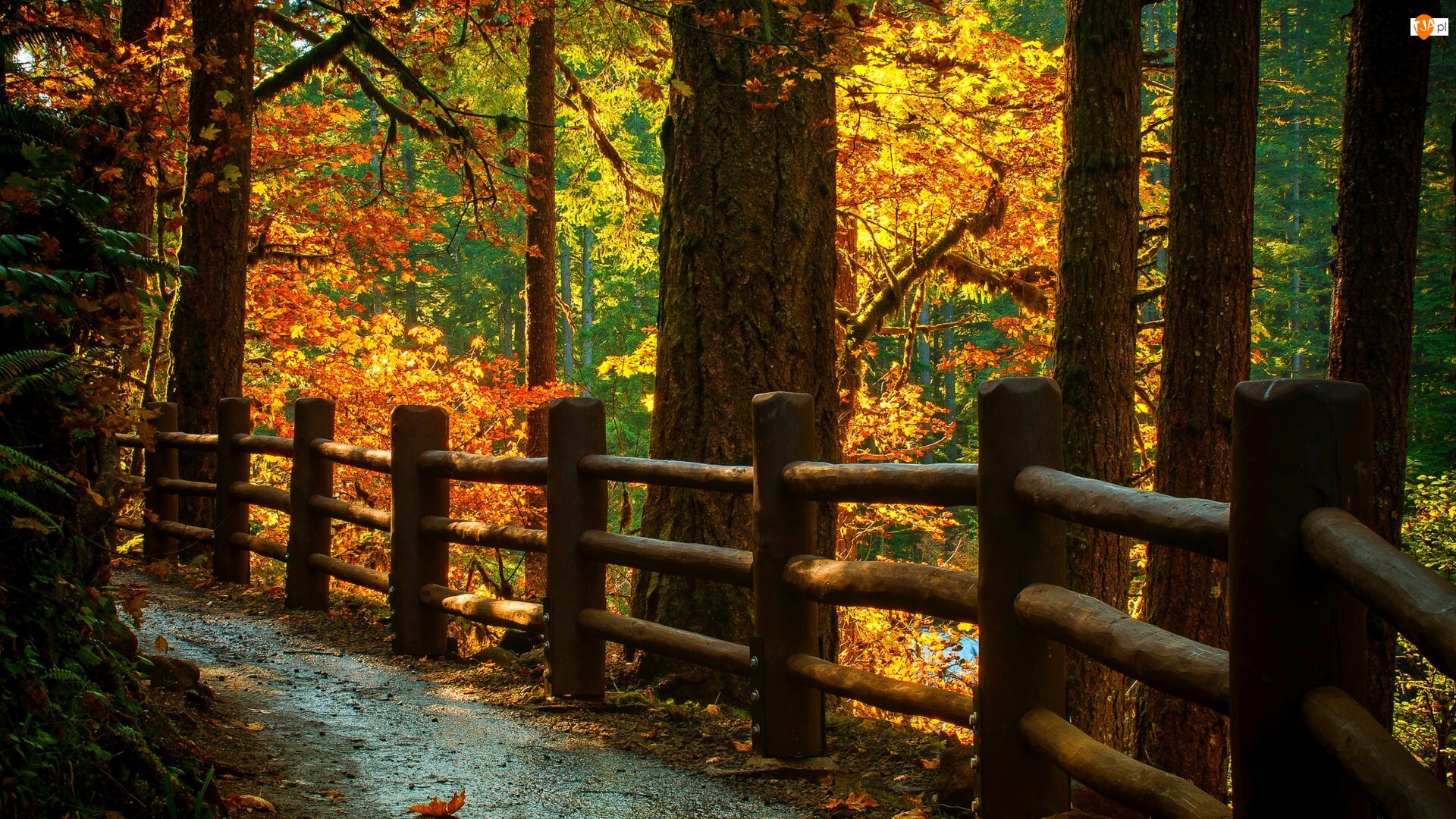 Ogrodzenie, Jesień, Las, Ścieżka
