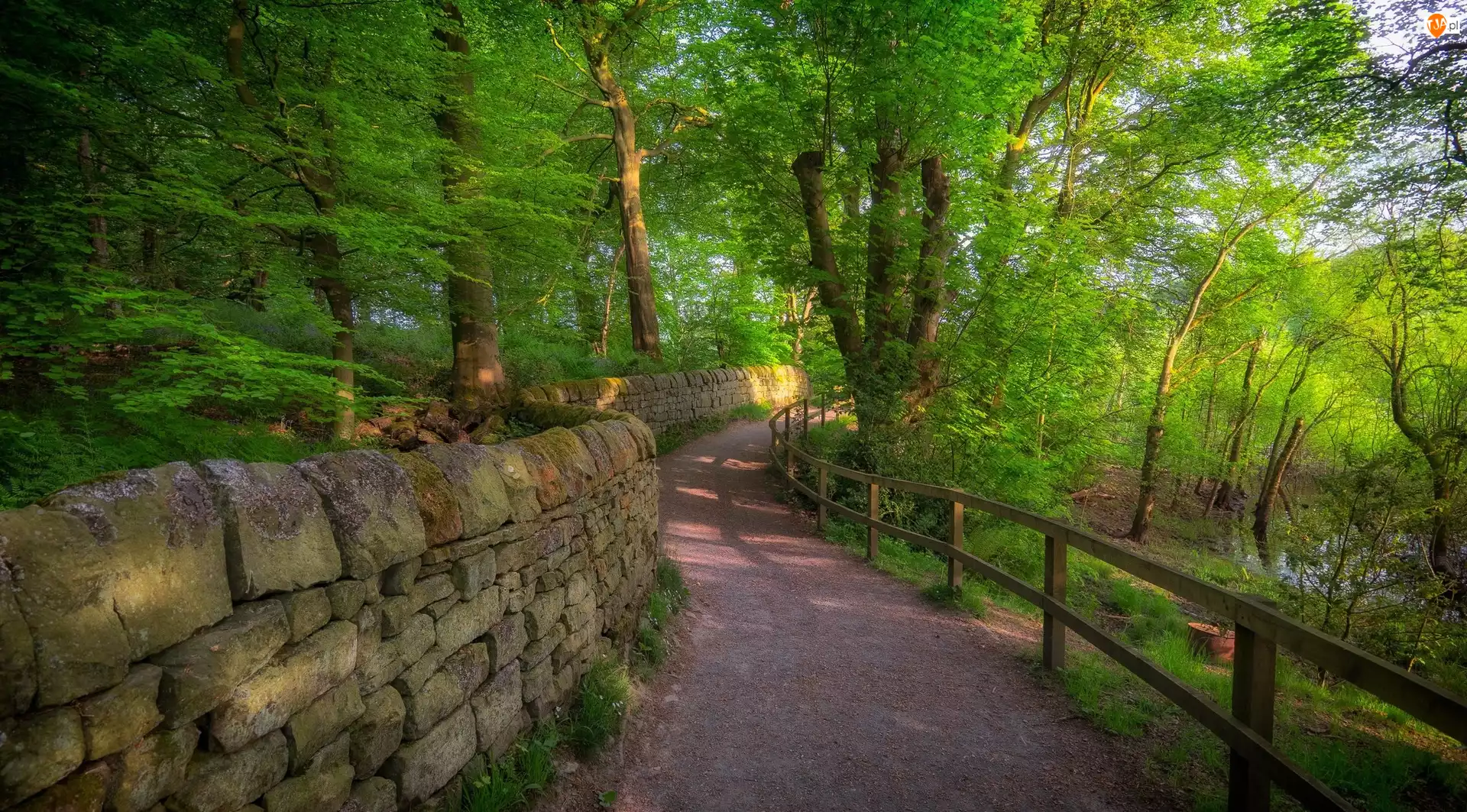 Las, Droga, Kamienny, Drzewa, Ogrodzenie, Murek