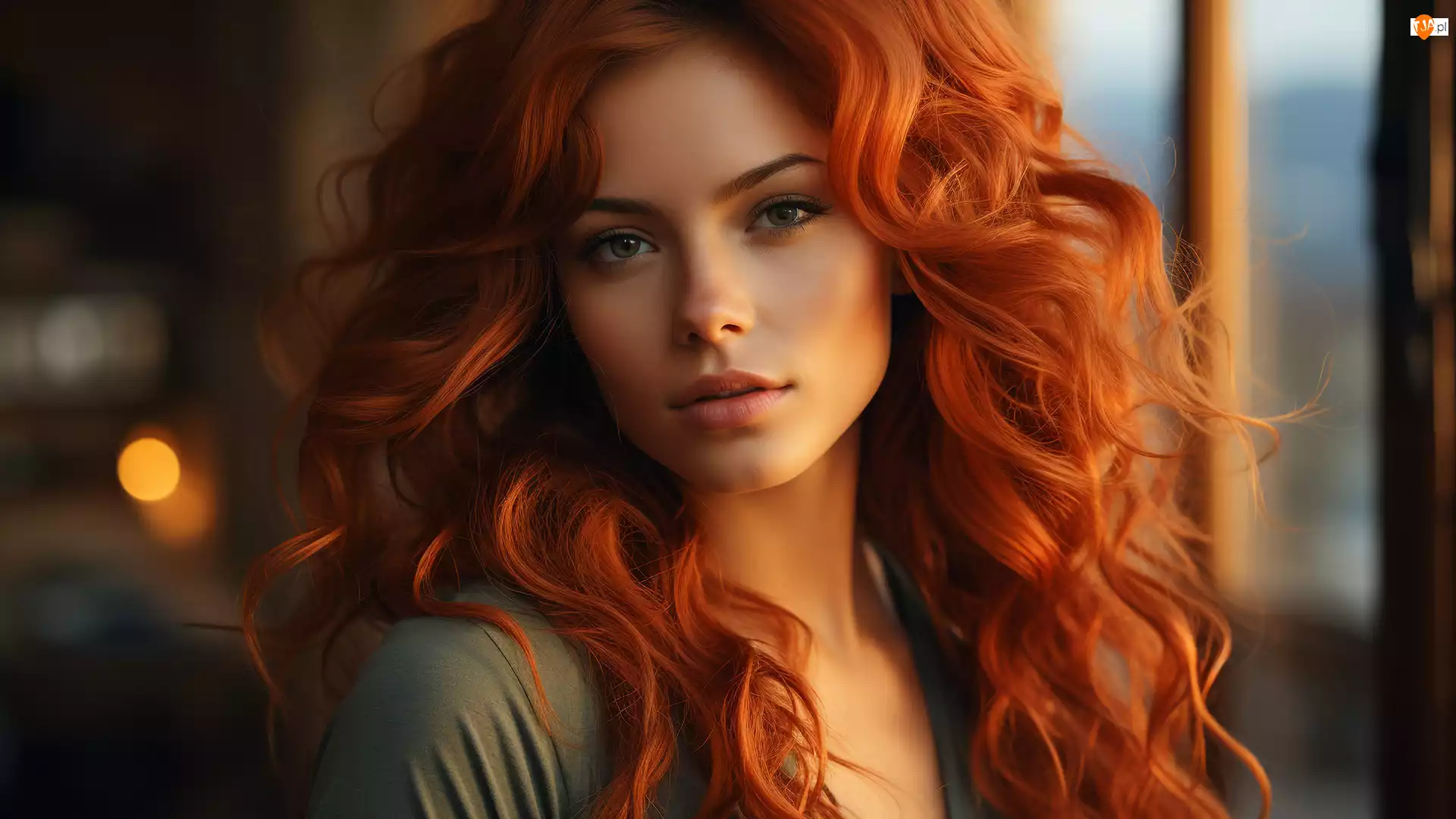 Okno, Kobieta, Rudowłosa