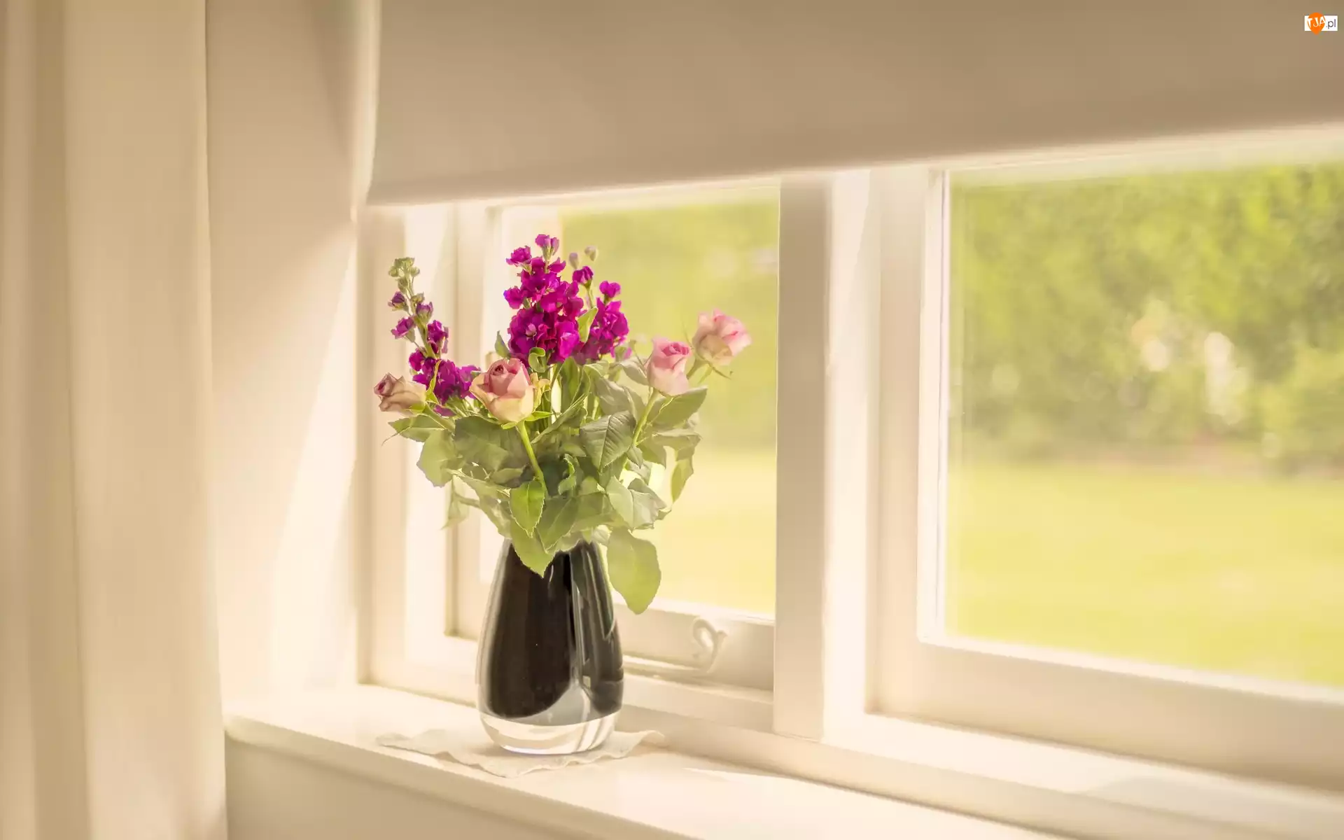 Okno z kwiatami w wazoniku