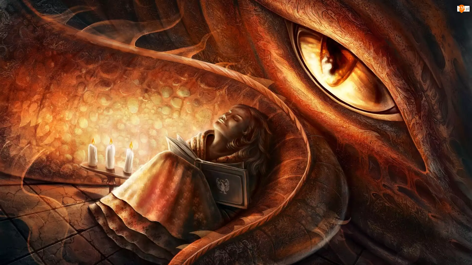 Oko, Fantasy, Kobieta, Smok, Ogon