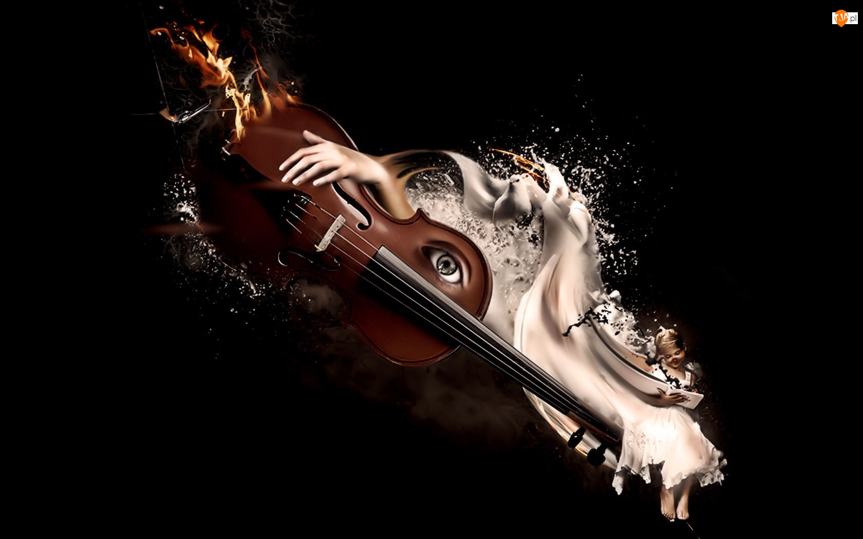 Oko, Płonące, Dziewczynka, Skrzypce, Dłoń