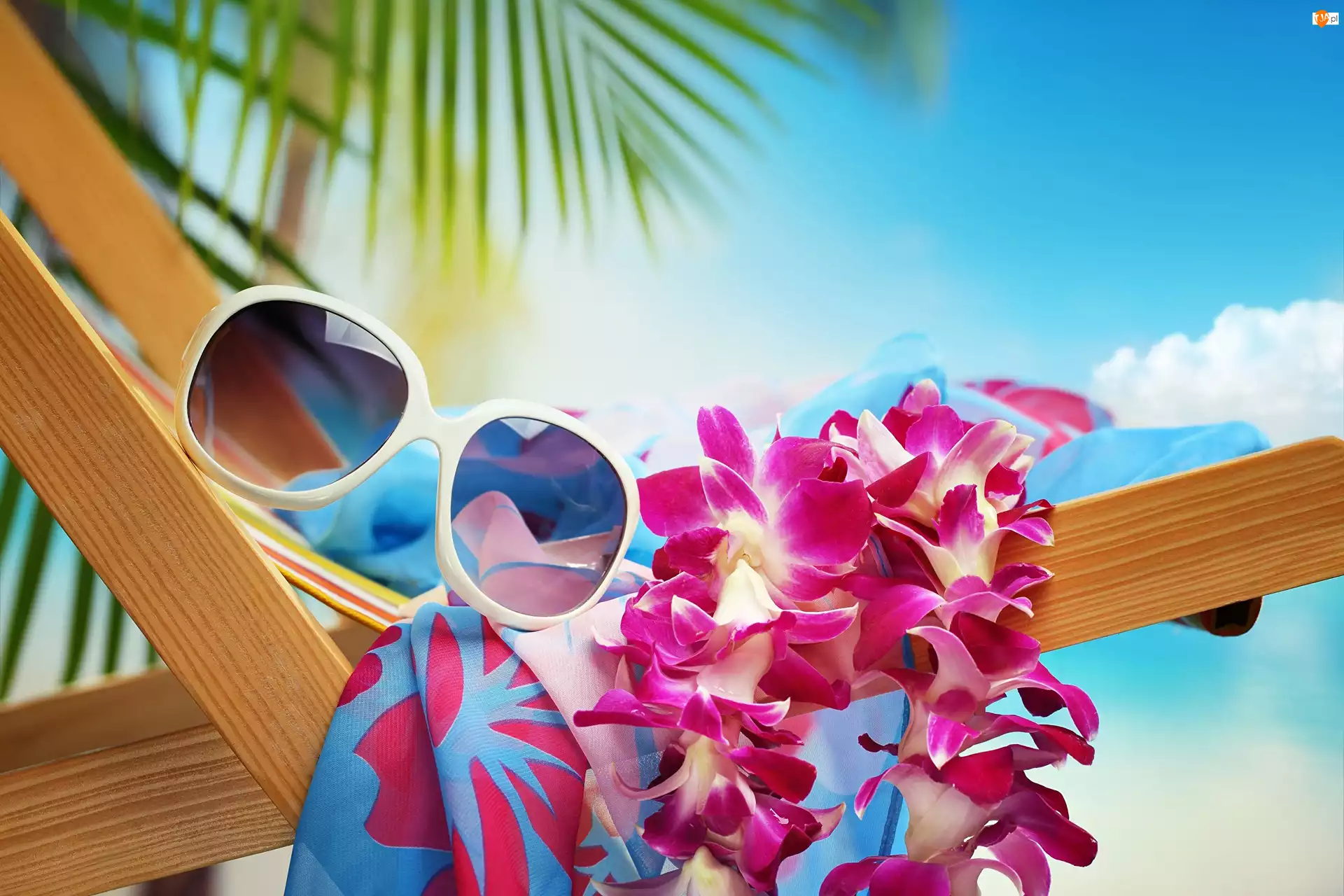 Leżak, Kwiaty, Lato, Wakacje, Okulary