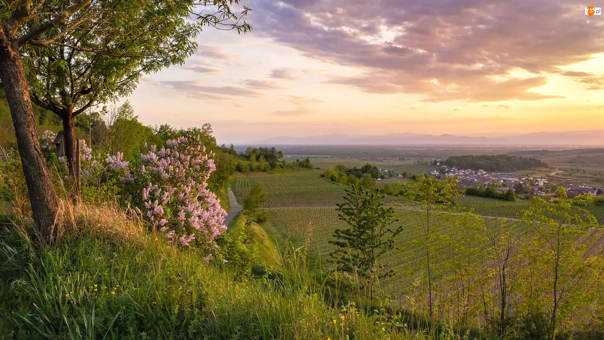 Okwiecony, Krzew, Niemcy, Drzewo, Bischoffingen, Miasteczko, Pola