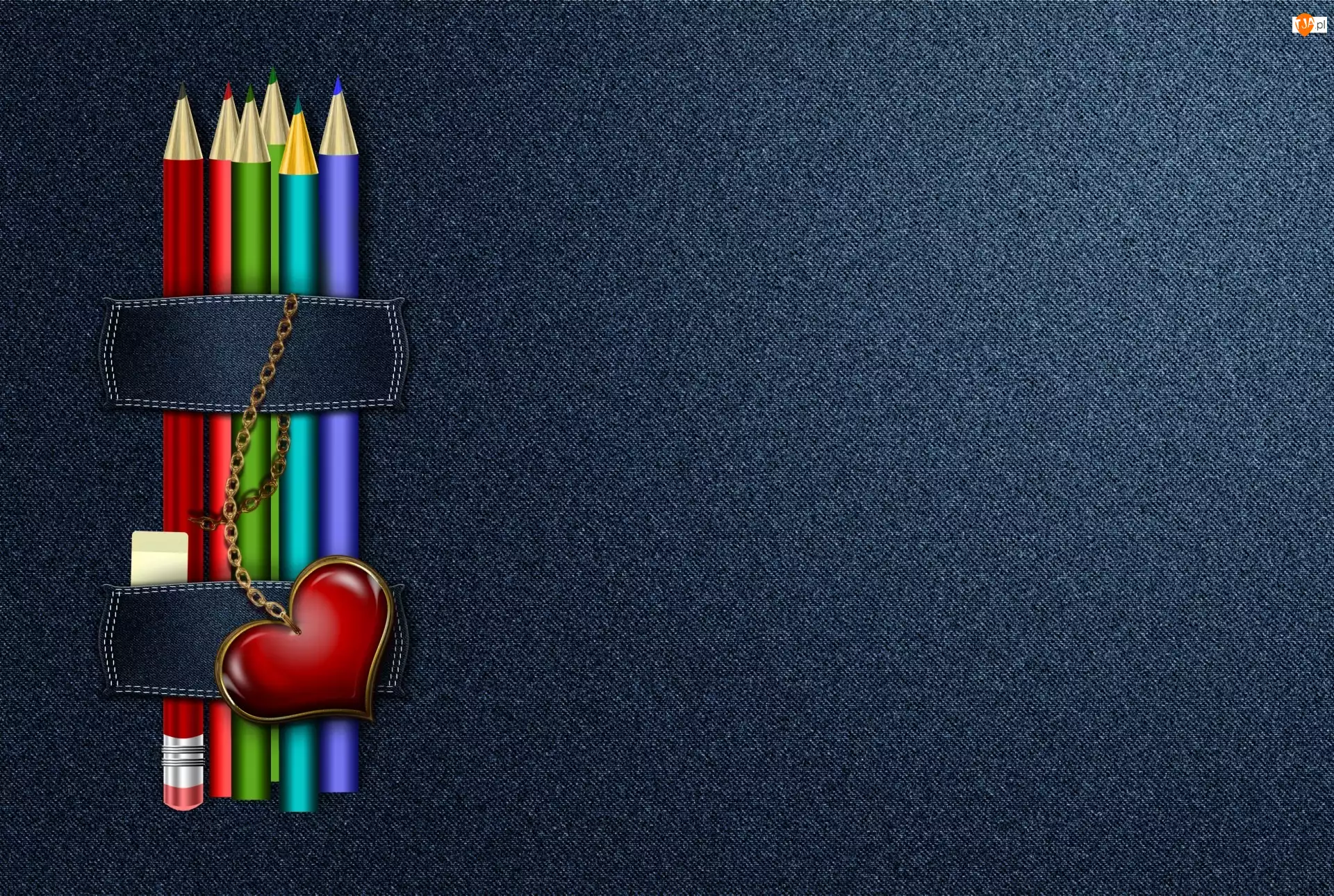 Kolorowe, Serduszko, Kredki, Łańcuszek