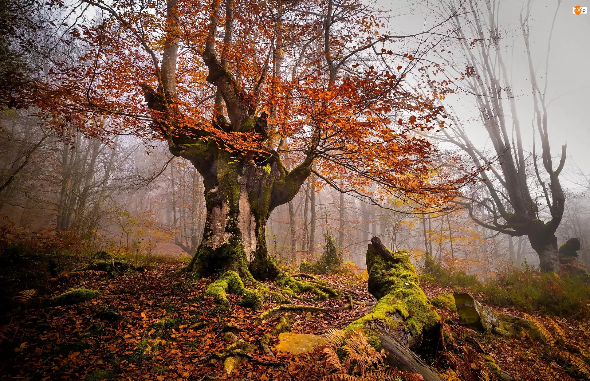 Mgła, Hiszpania, Jesień, Park Narodowy Gorbea, Drzewa