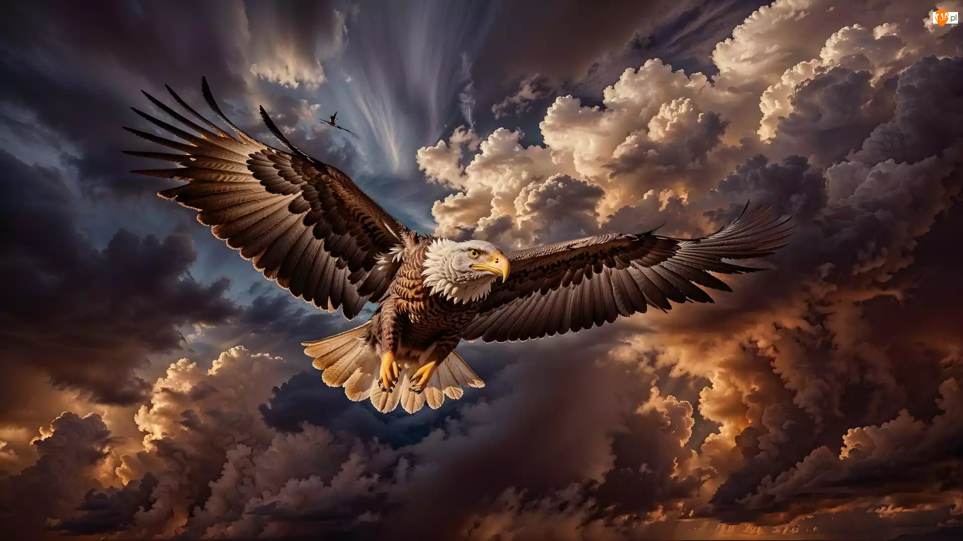 Orzeł bielik w locie na tle rozświetlonychkoloro