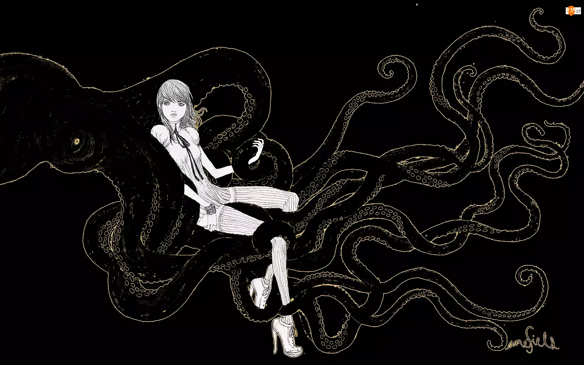 Ośmiornica, Rysunek, Kobieta