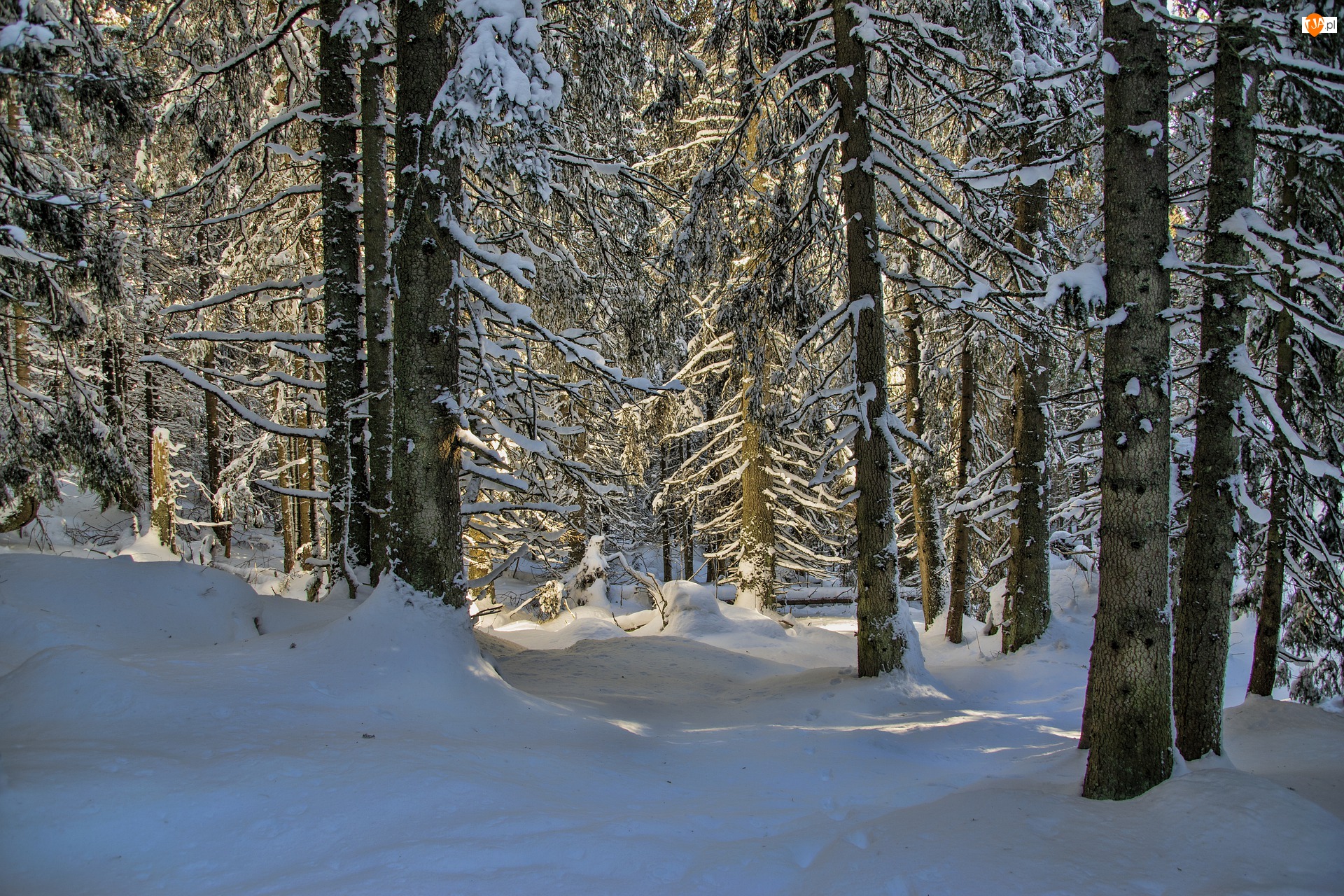 Śnieg, Dzień, Las, Zima, Słoneczny