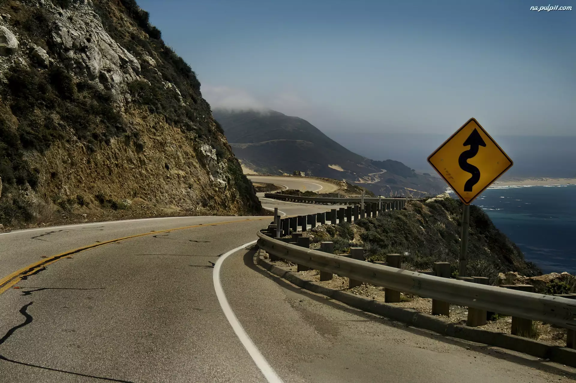 Ostrzegawczy, Droga, Barjerka, Góry, Znak