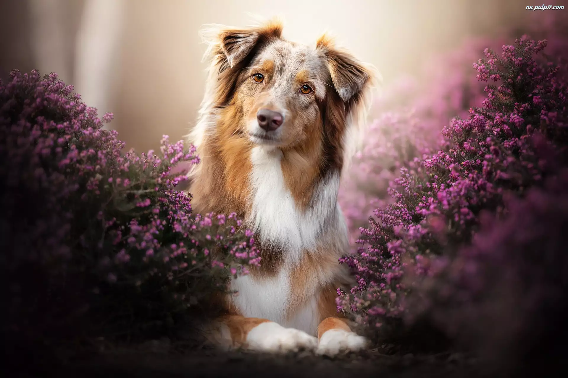 Wrzosy, Pies, Brązowo-biały, Owczarek australijski