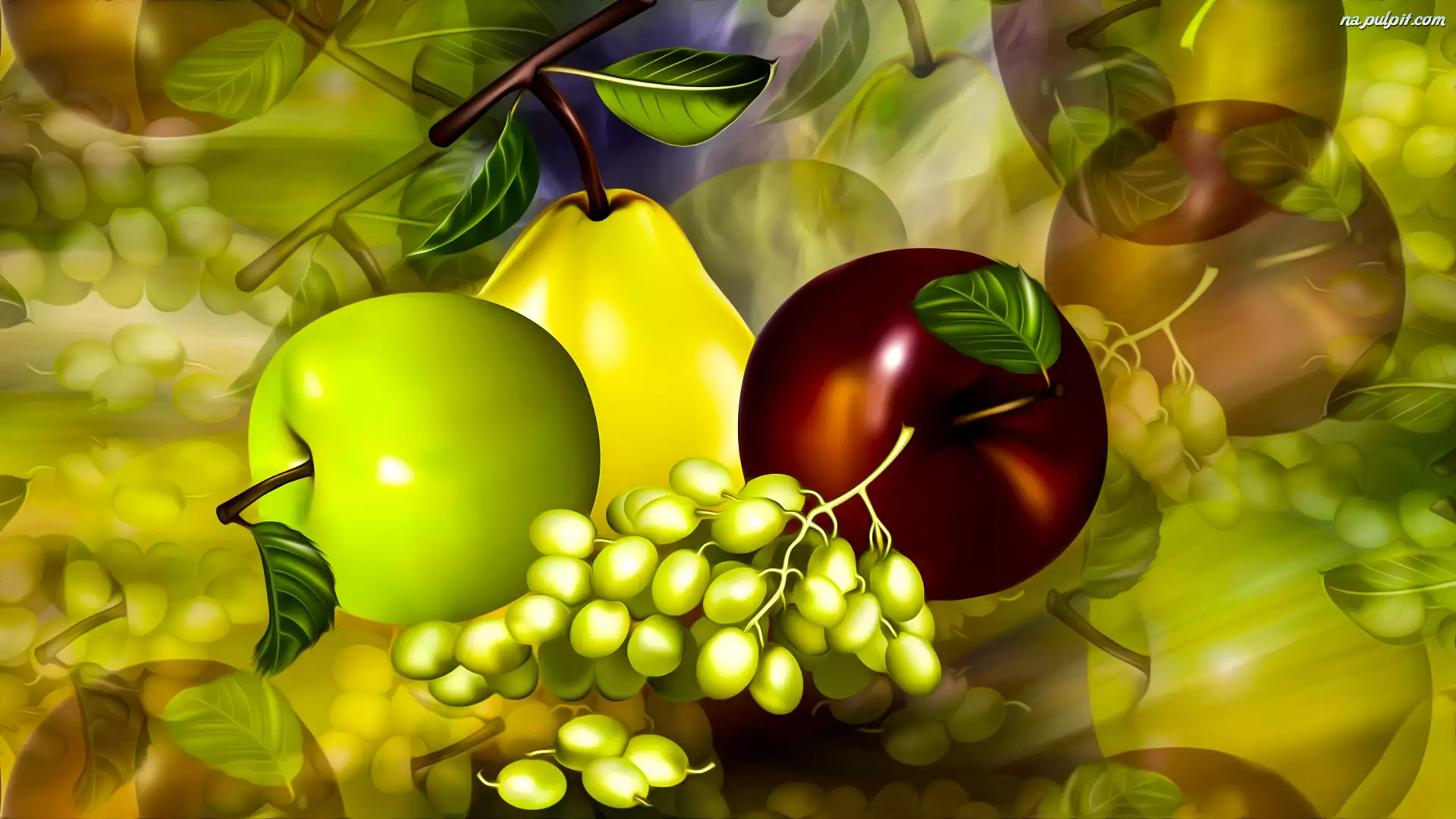 Gruszka, Grafika, Jabłka, Owoce, Winogrona