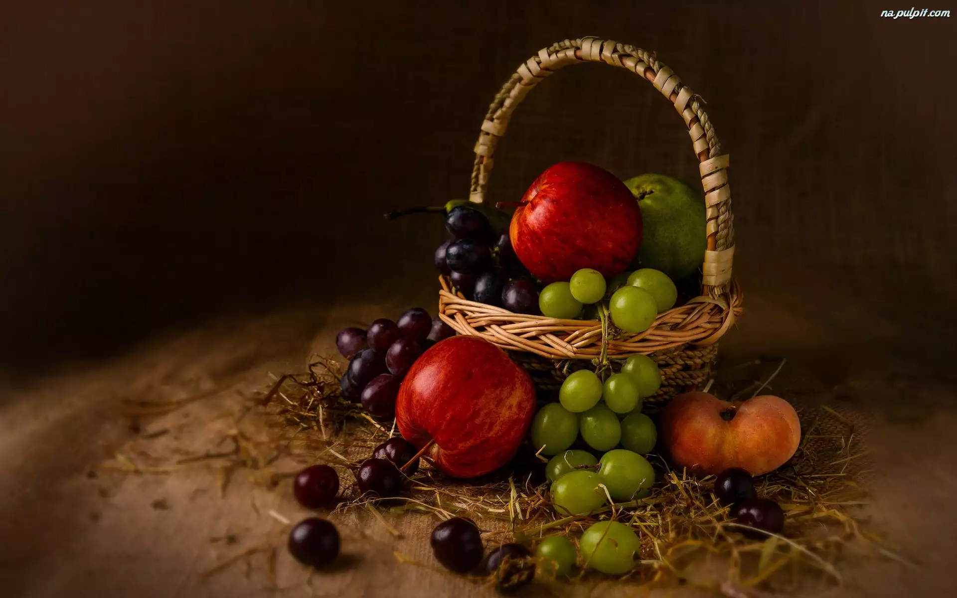 Owoce, Koszyk, Jabłka, Gruszka, Winogrona, Brzosk