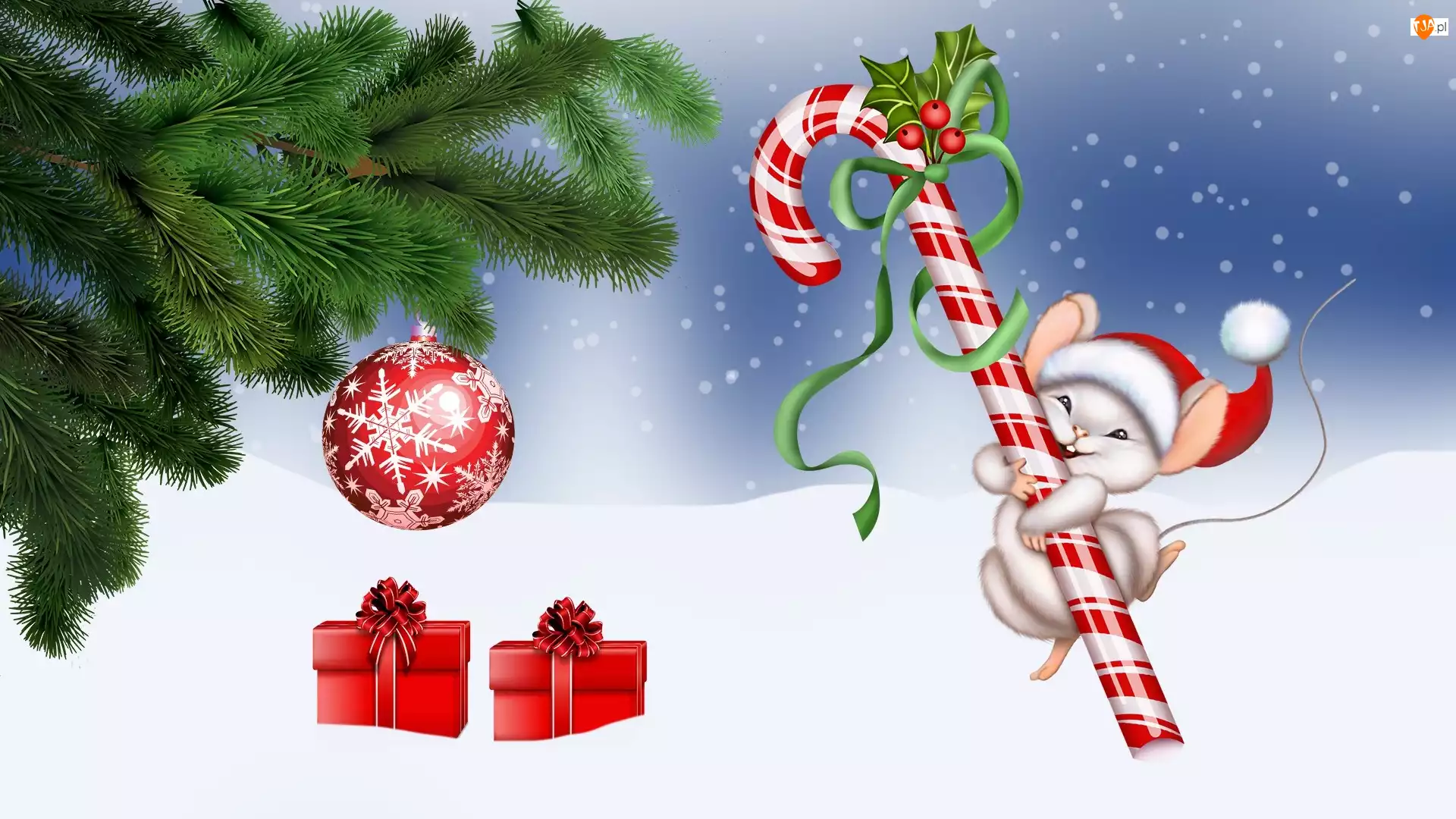 Lizak, Boże Narodzenie, Bombka, 2D, Myszka, Prezenty