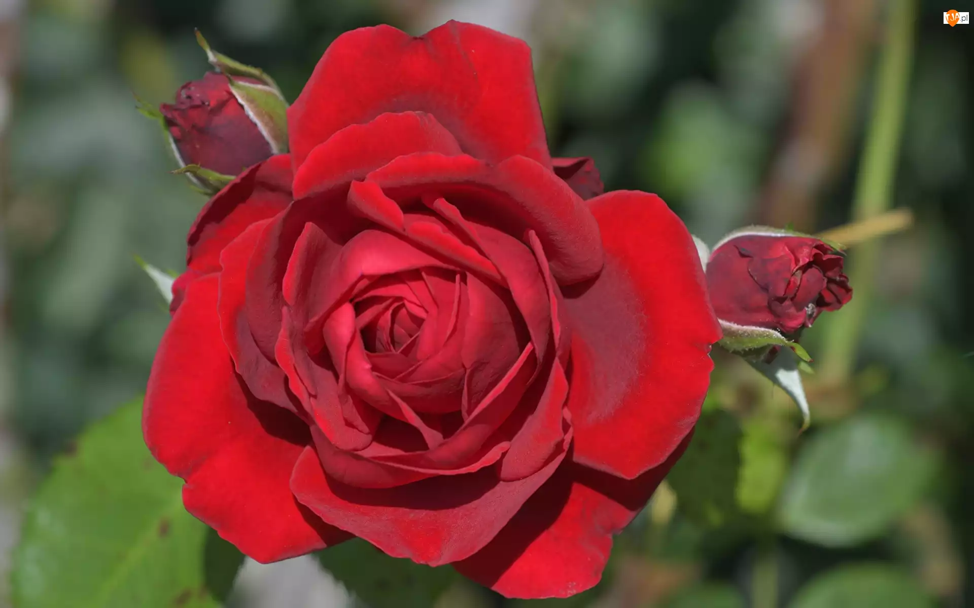 Pąki, Czerwona, Rozkwitnięta, Róża